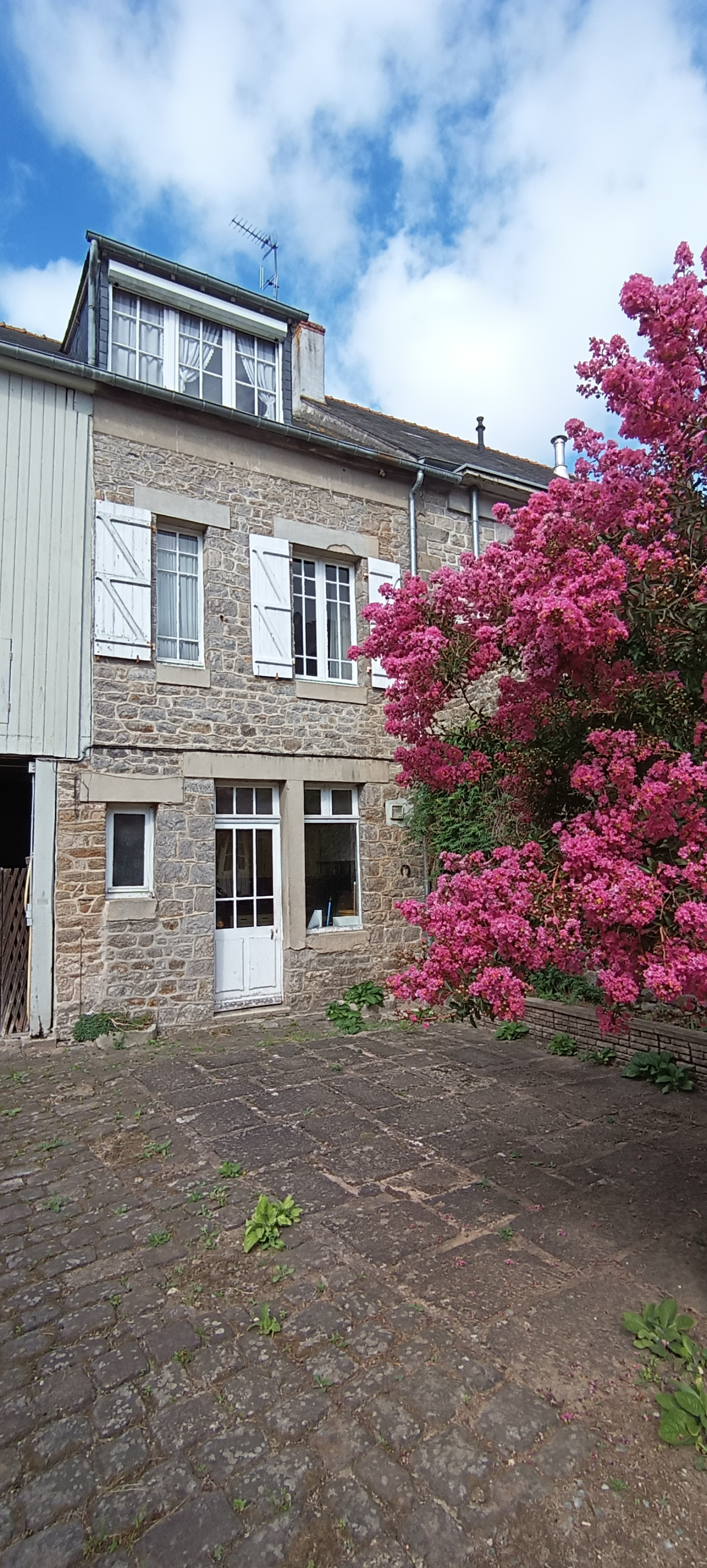 Une maison de ville de 140 M² en pierres couverte en ardoises sur 3 niveaux avec en rdc une entrée, un salon ouest , une cuisine exposé est, avec un accés espace extérieur.