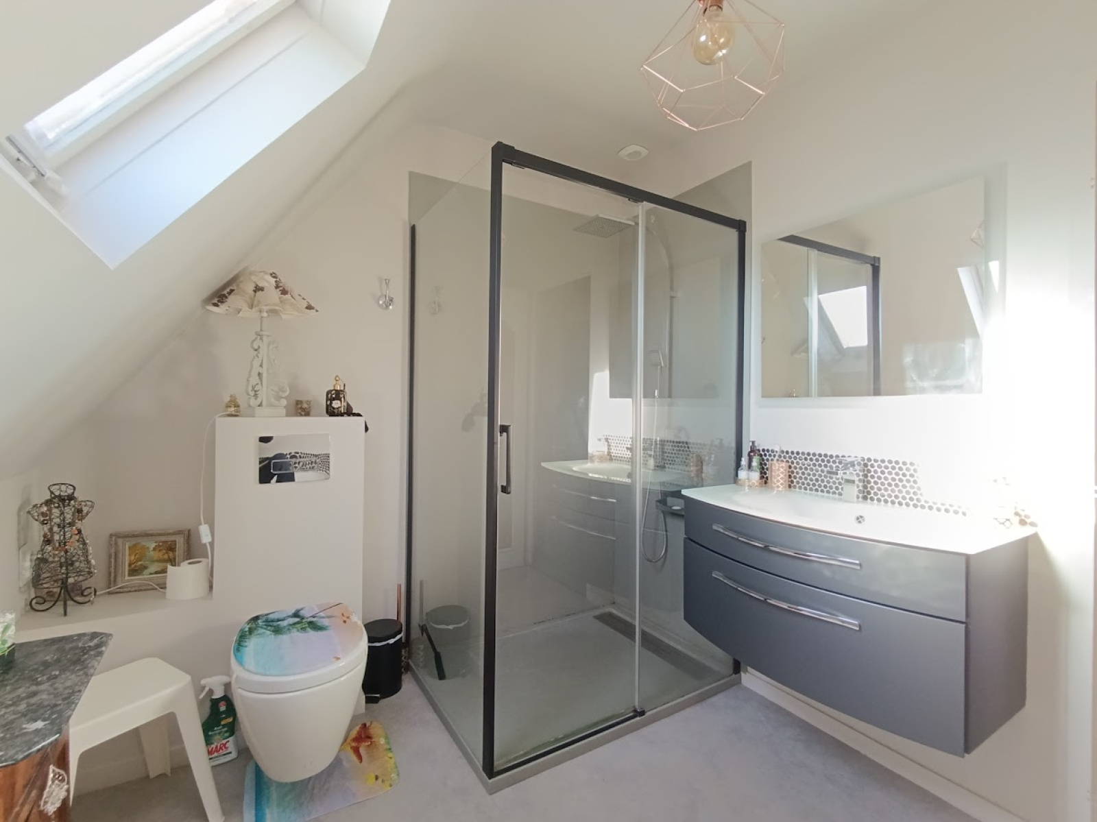 A l'étage, vous disposez de 3 chambres et d'une salle de bains refaite à neuf (douche, baignoire d'angle et WC).