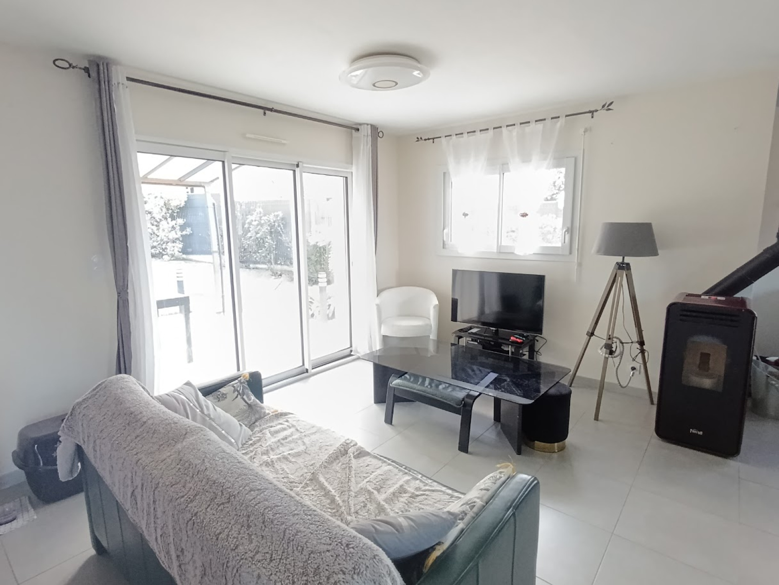 En rez-de-chaussée, une entrée avec placard, WC, vous emmène vers une vaste pièce de vie d'environ 50m², lumineuse avec accès terrasse et jardin au sud. Cette pièce dispose d'une cuisine aménagée et équipée d'un salon/salle à manger avec son poêle à granules efficace qui permet de se passer des convecteurs. Le garage d'environ 18m² peut rester ainsi ou devenir une suite parentale avec salle d'eau et dressing.