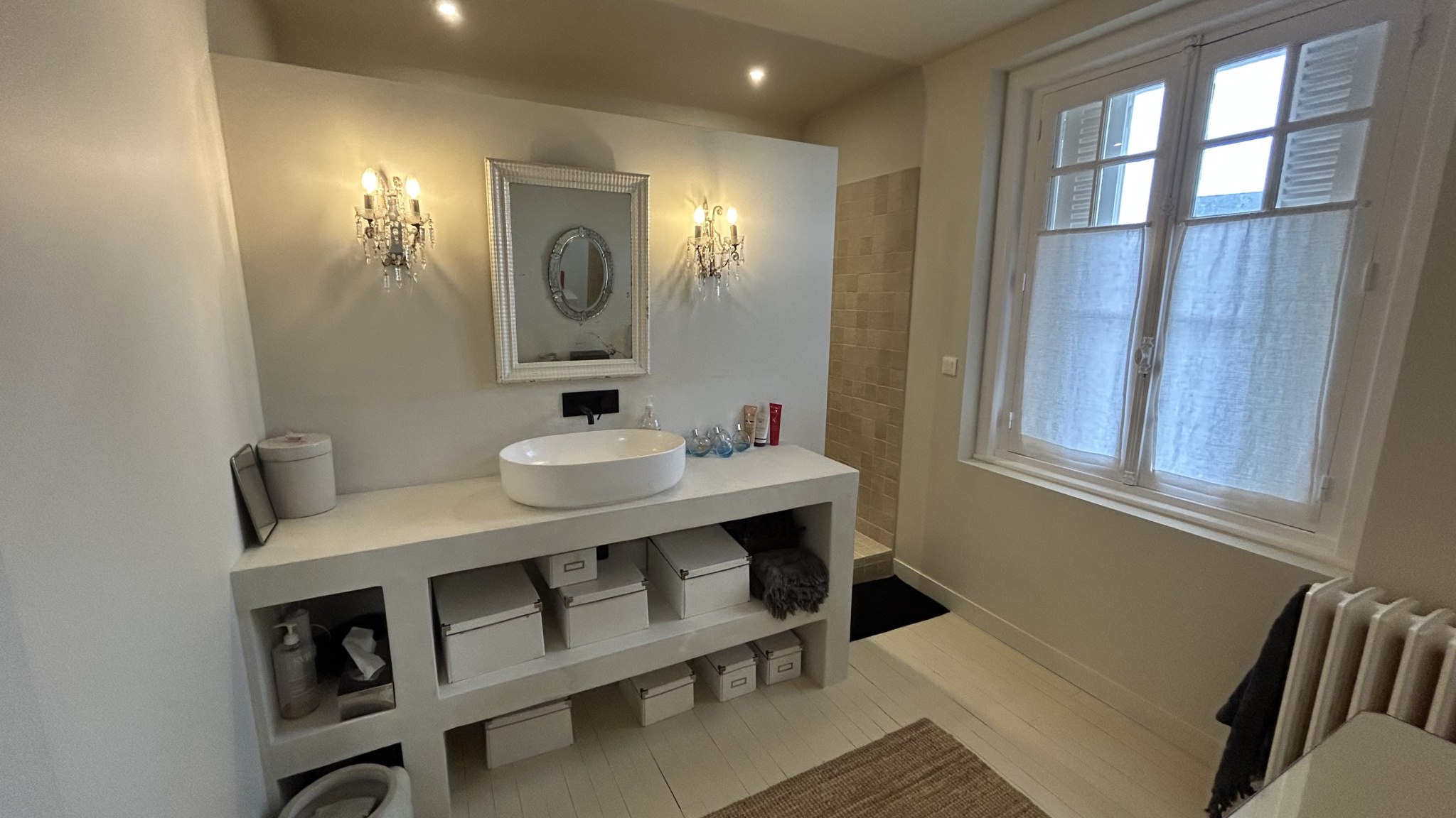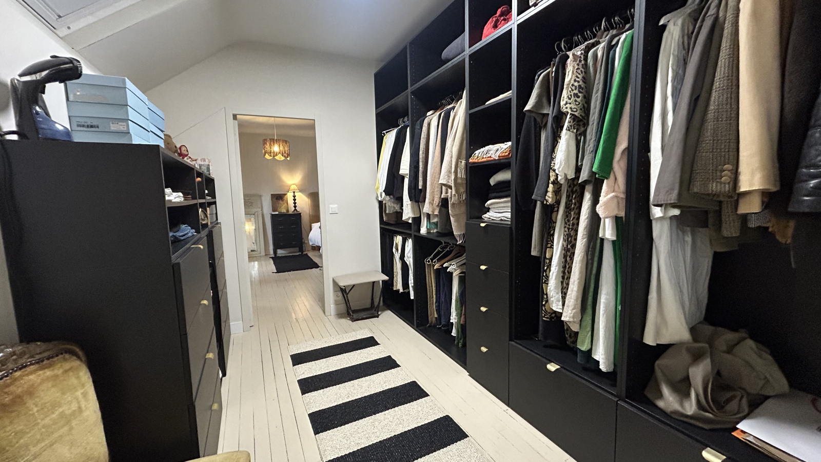 A l'étage, un dégagement dessert une chambre, un WC, une salle d'eau et une énorme suite avec son dressing et sa propre salle d'eau et son WC indépdendant.
