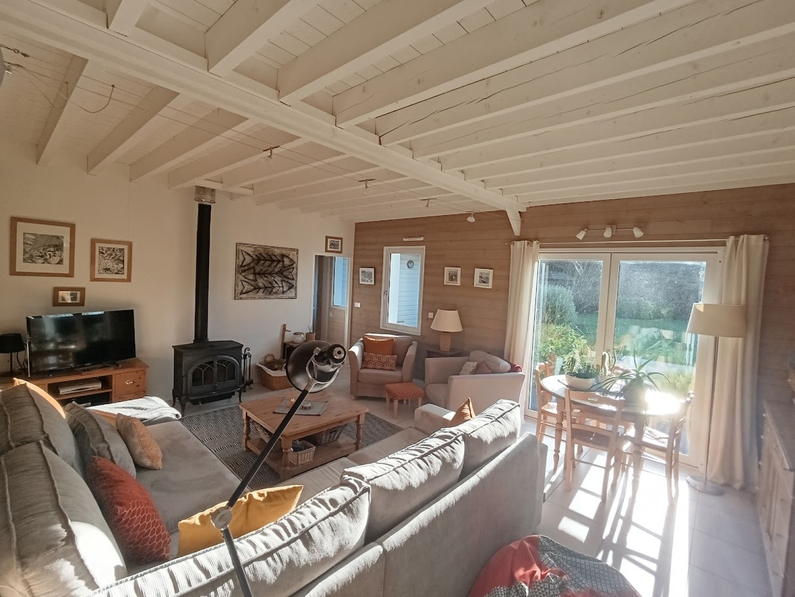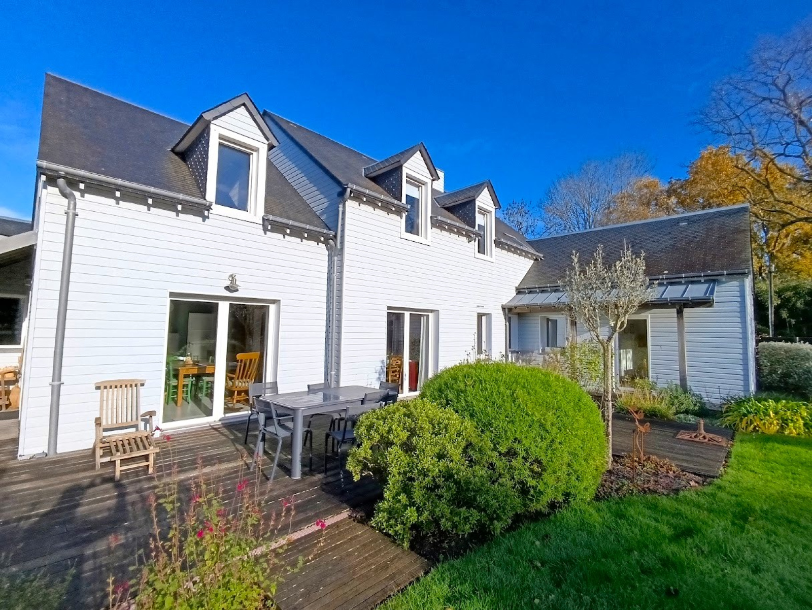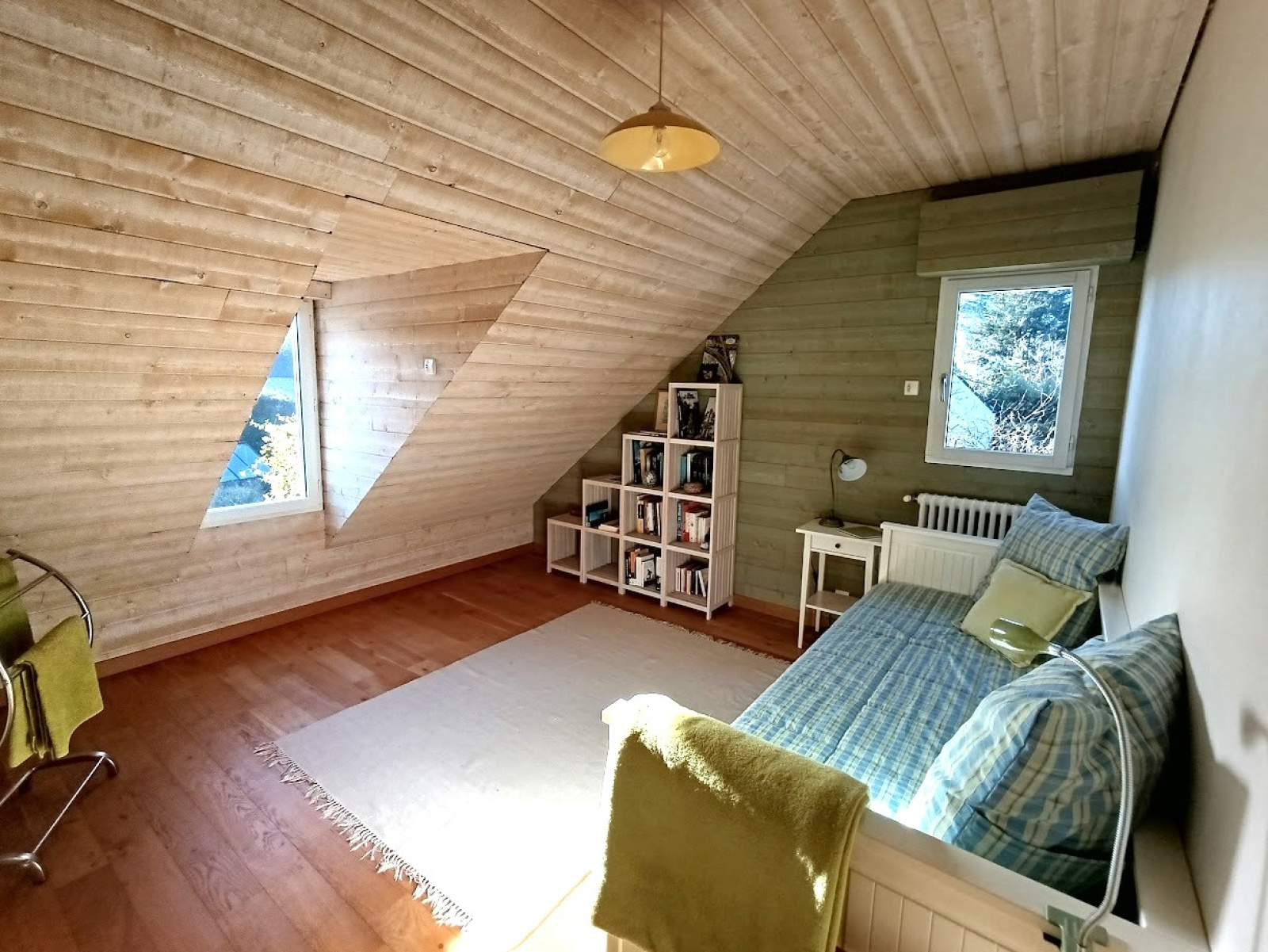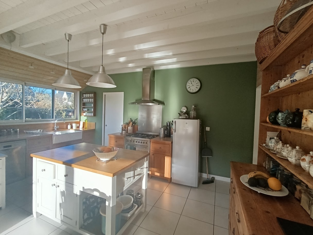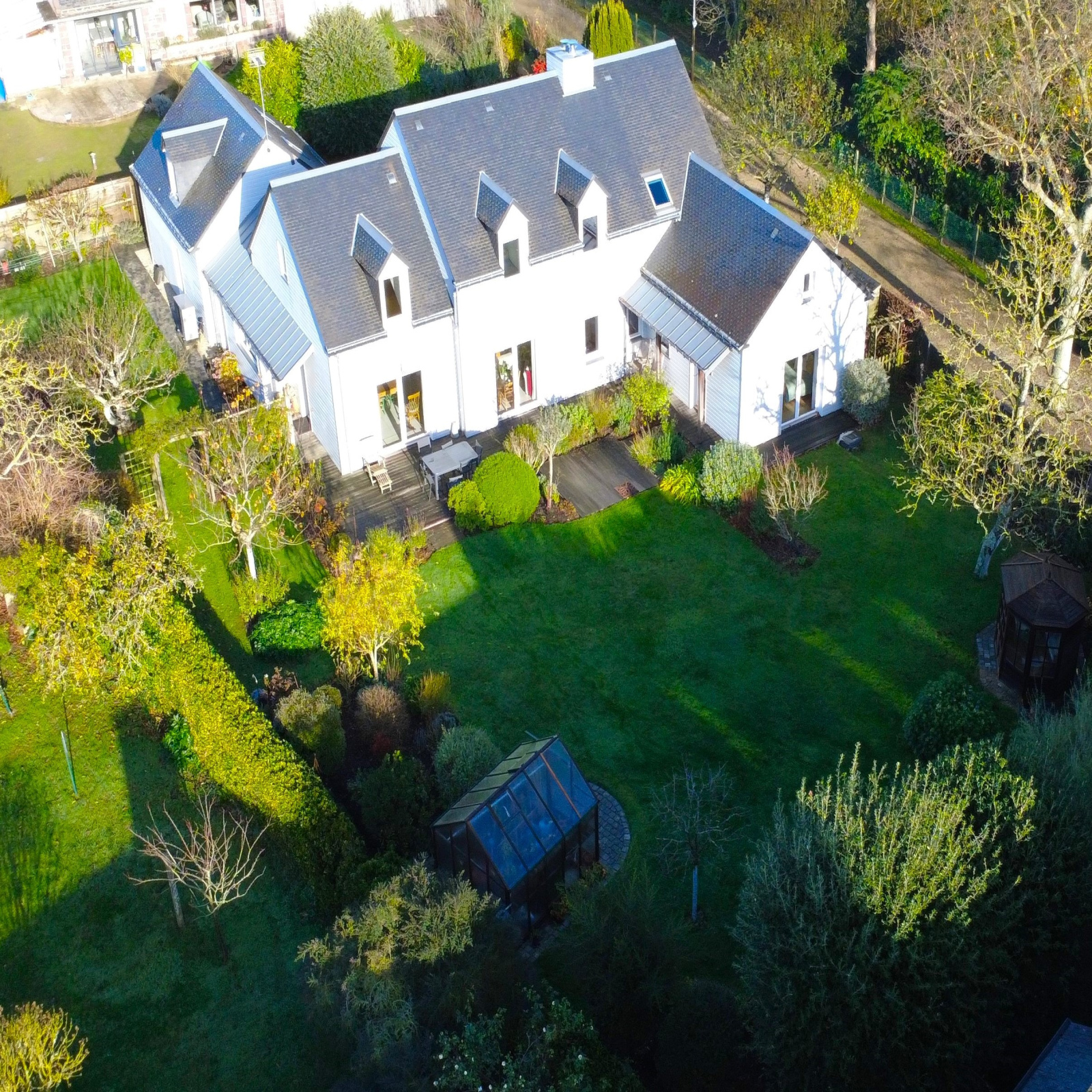 Cette propriété offre un très grand confort de vie, une qualité de construction, pensée par un architecte local de renom . Elle offre en rez-de-chaussée, une belle entrée, cuisine aménagée et équipée ouverte sur le séjour, un grand salon cosy avec son poêle à bois. Toutes ces pièces sont tournées vers le SUD et un magnifique jardin arboré sans vis à vis. Lingerie, WC, bureau, petit salon avec poêle à bois (pouvant devenir une grande chambre) et suite parentale disposant d'une vaste chambre, d'un dressing, d'une salle de bain orienté SUD et OUEST avec une vue superbe sur un écrin verdoyant.