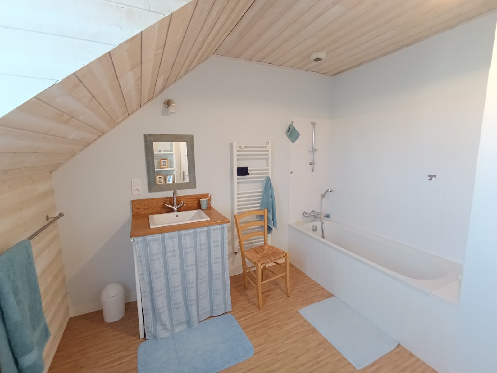 Le PLUS, un garage double de 40m² avec une pièce "atelier" (comptabilisée dans les M²) pouvant être un bureau pour profession libérale ou location saisonnière (arrivées d'eau à proximité).