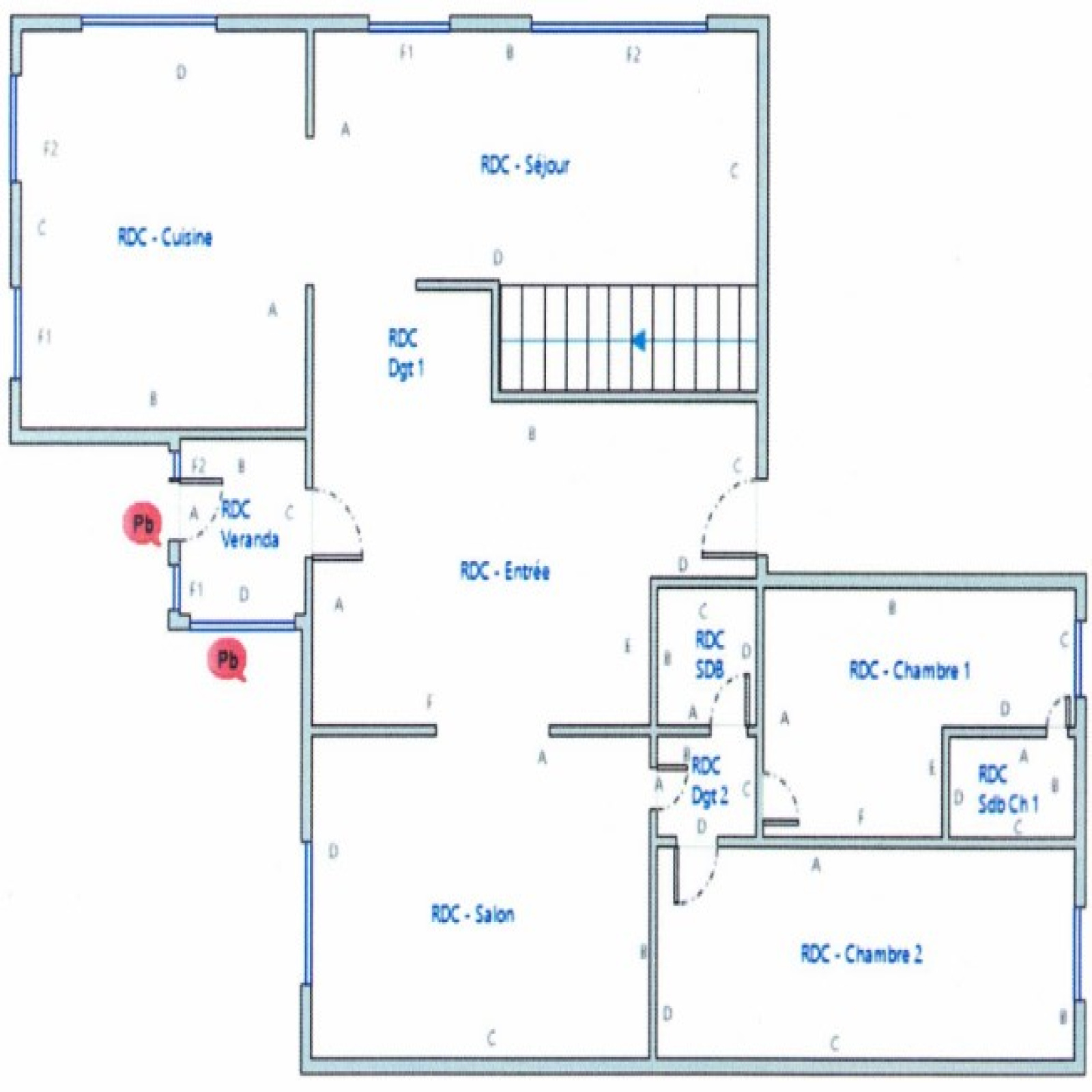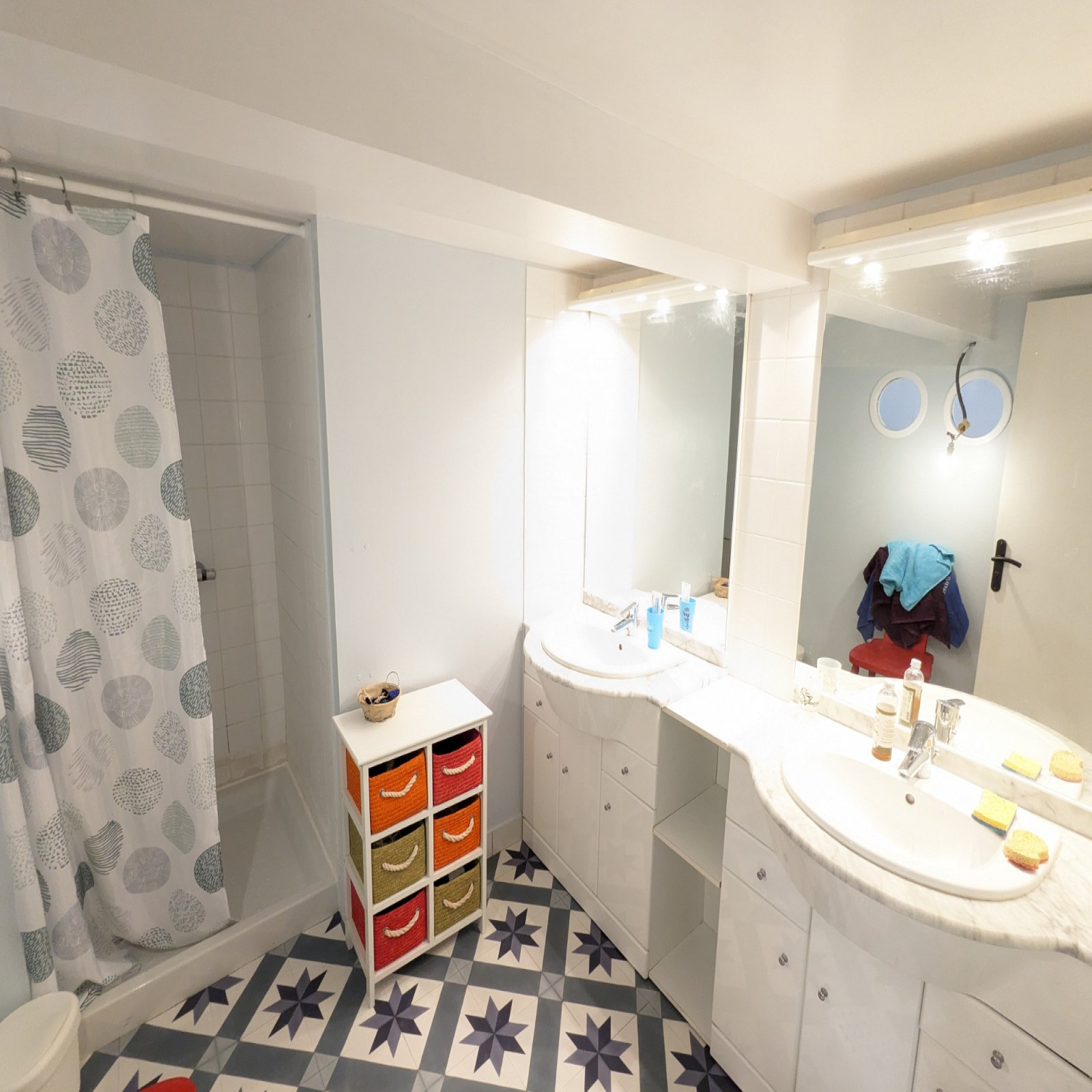 Deux chambres, dont une avec salle d'eau privative, une salle de bain/wc.