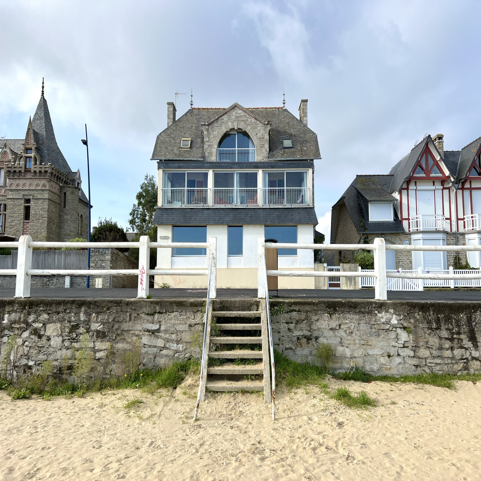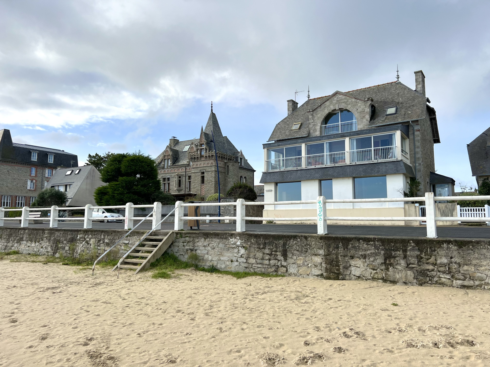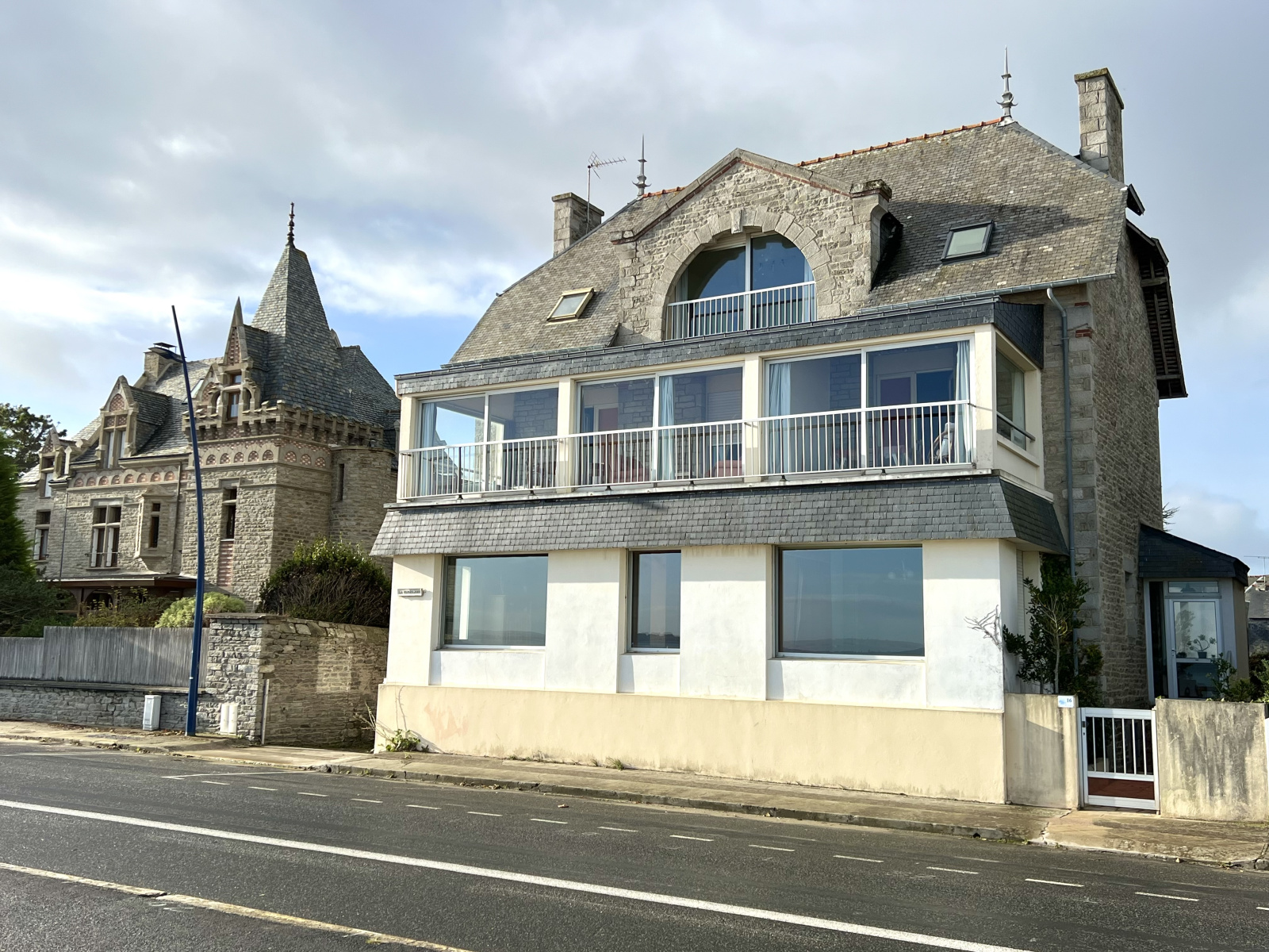 VENDU PAR AIS - SAINT CAST LE GUILDO - Au coeur de la station, belle villa en front de mer édifiée sur 566m² de terrain. Cette demeure avec vue mer à chaque niveau est divisée en plusieurs logements à savoir un appartement en rez-de-chaussée, trois appartements au premier étage et deux appartements au deuxième étage. Sous sol complet. Cette maison offre de nombreuses possibilités d'aménagement.