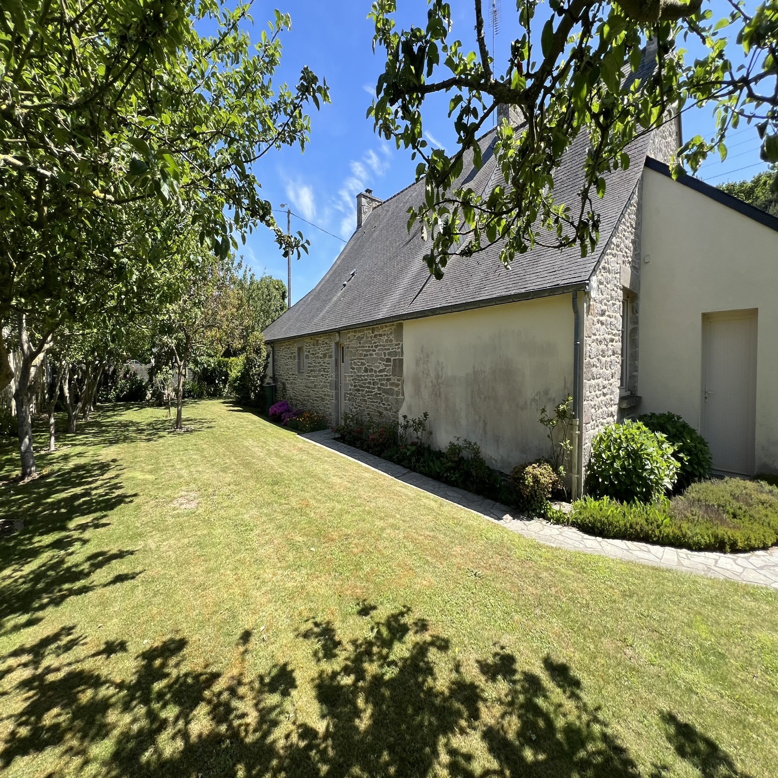 AIS SAINT CAST LE GUILDO - Située sur la commune prisée de Saint-Cast-le-Guildo, cette belle longère en pierre, entièrement rénovée en 1997, offre un cadre de vie paisible à seulement quelques minutes des plages et des commodités. Édifiée sur un terrain de 1 500 m², cette propriété allie le charme de l’ancien et le confort moderne. La maison, couverte en ardoise, se compose au rez-de-chaussée d’un vaste salon-séjour lumineux avec un espace cuisine ouvert, parfait pour la convivialité. Une véranda apporte une belle luminosité et prolonge agréablement l’espace de vie. Vous trouverez également un cellier, une chambre, une salle d’eau et des WC indépendants. À l’étage, une mezzanine dessert trois chambres supplémentaires, une salle de bains ainsi qu’un second WC. À l’extérieur, un garage double indépendant ainsi qu’une remise attenante à la maison complètent ce bien aux multiples atouts. Idéale pour une résidence principale ou secondaire, cette maison séduira les amateurs de pierre et d’authenticité, en quête de calme à proximité du littoral breton.