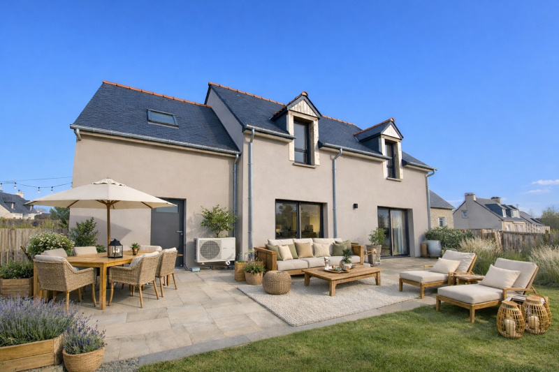 AIS -SAINT CAST LE GUILDO, Dans un quartier calme et agréable proche d'une plage et du golf, Vaste Maison de 250 m² environ constuite en 2005 offrant une entrée desservant une grande pièce de vie lumineuse de 62 m² environ avec cheminée ouverte, cuisine aménagée et équipée, arrière cuisine, suite parentale avec dressing et salle de bains, une chambre, 2 wc. A l'étage vaste mezzanine de 30 m² environ, 4 belles chambres, wc; salle de bains.Belles prestations,