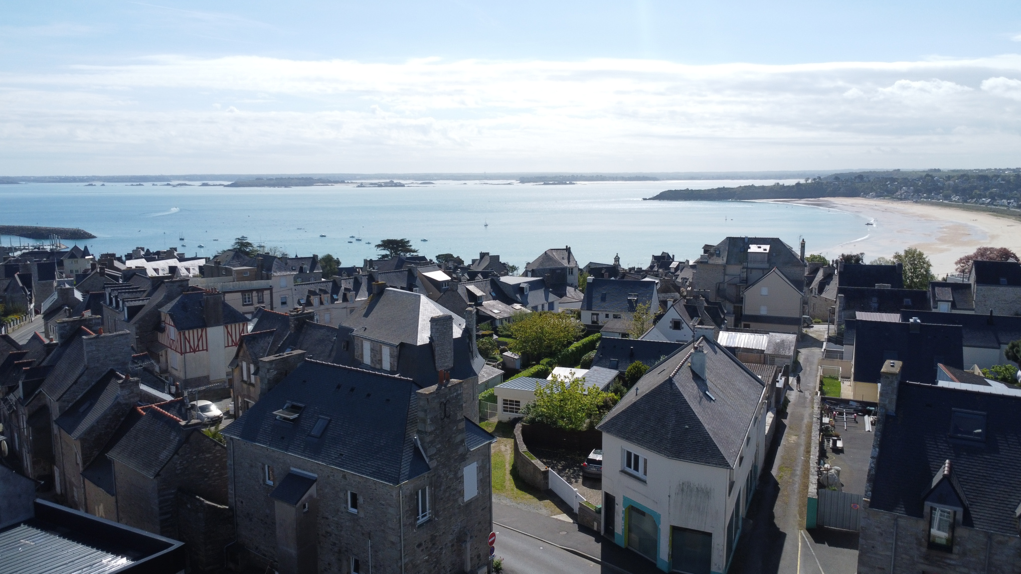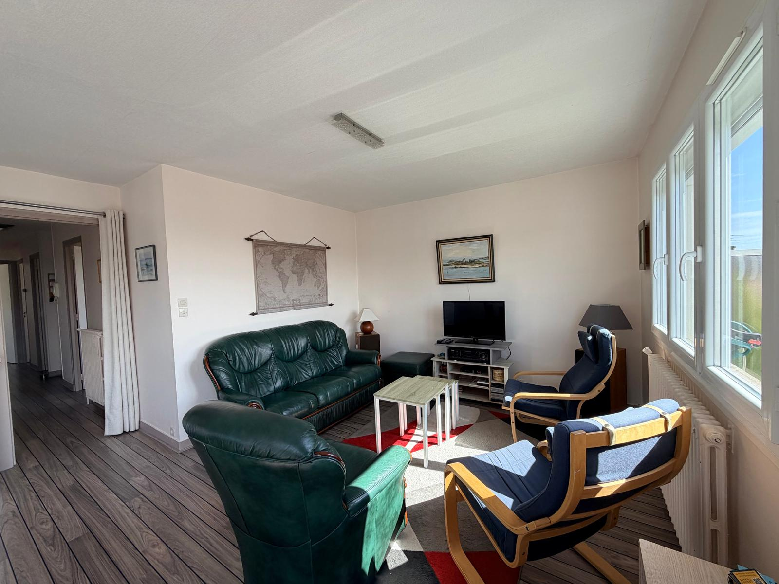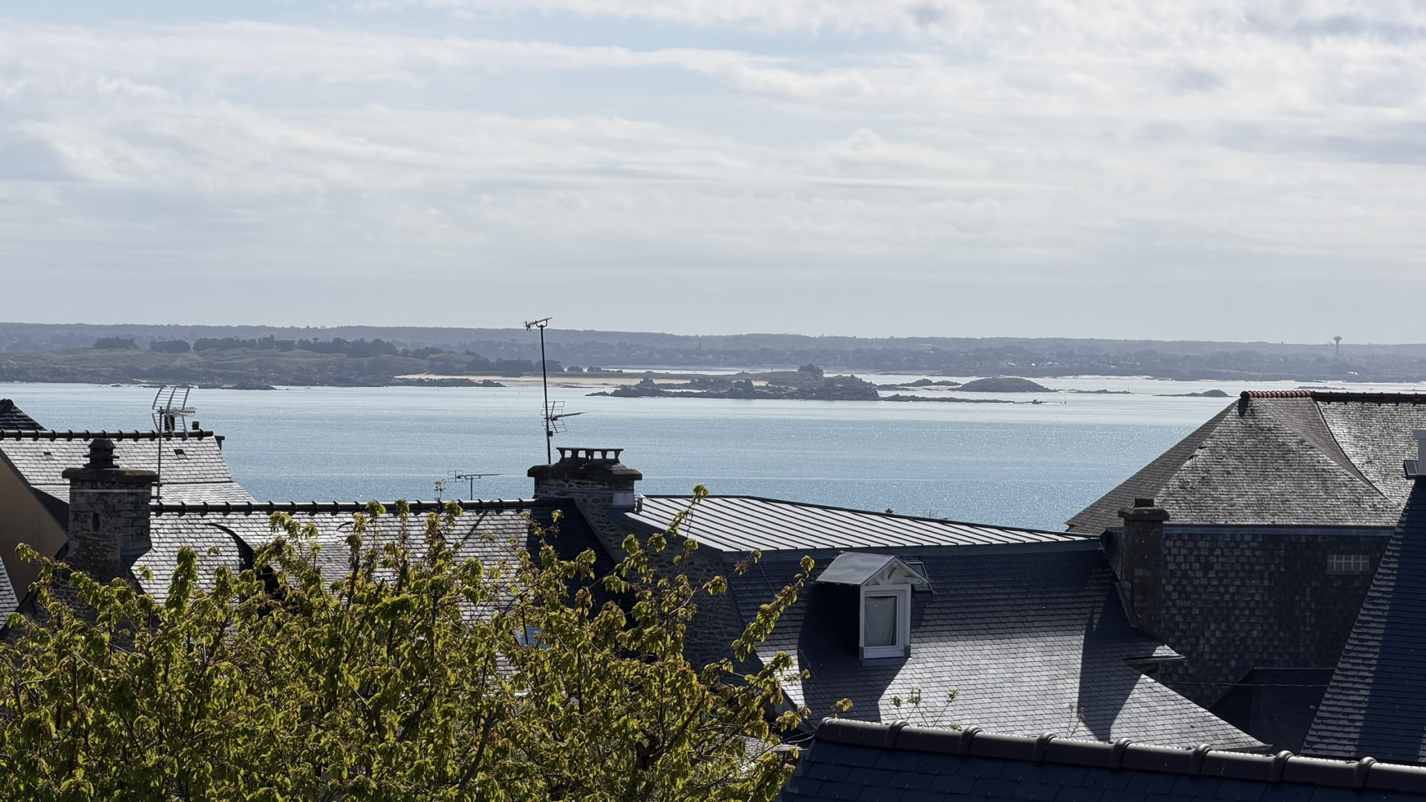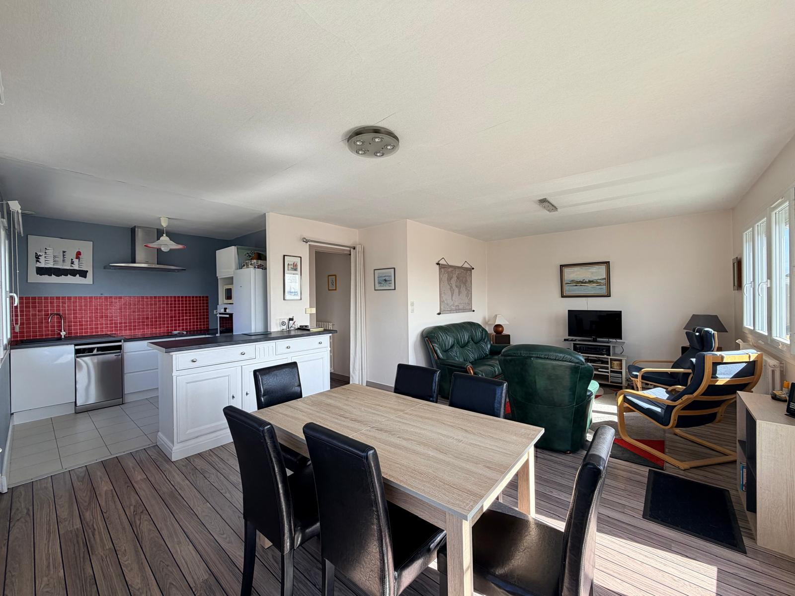 À l’étage, un appartement bénéficiant d’une vue mer se compose de :