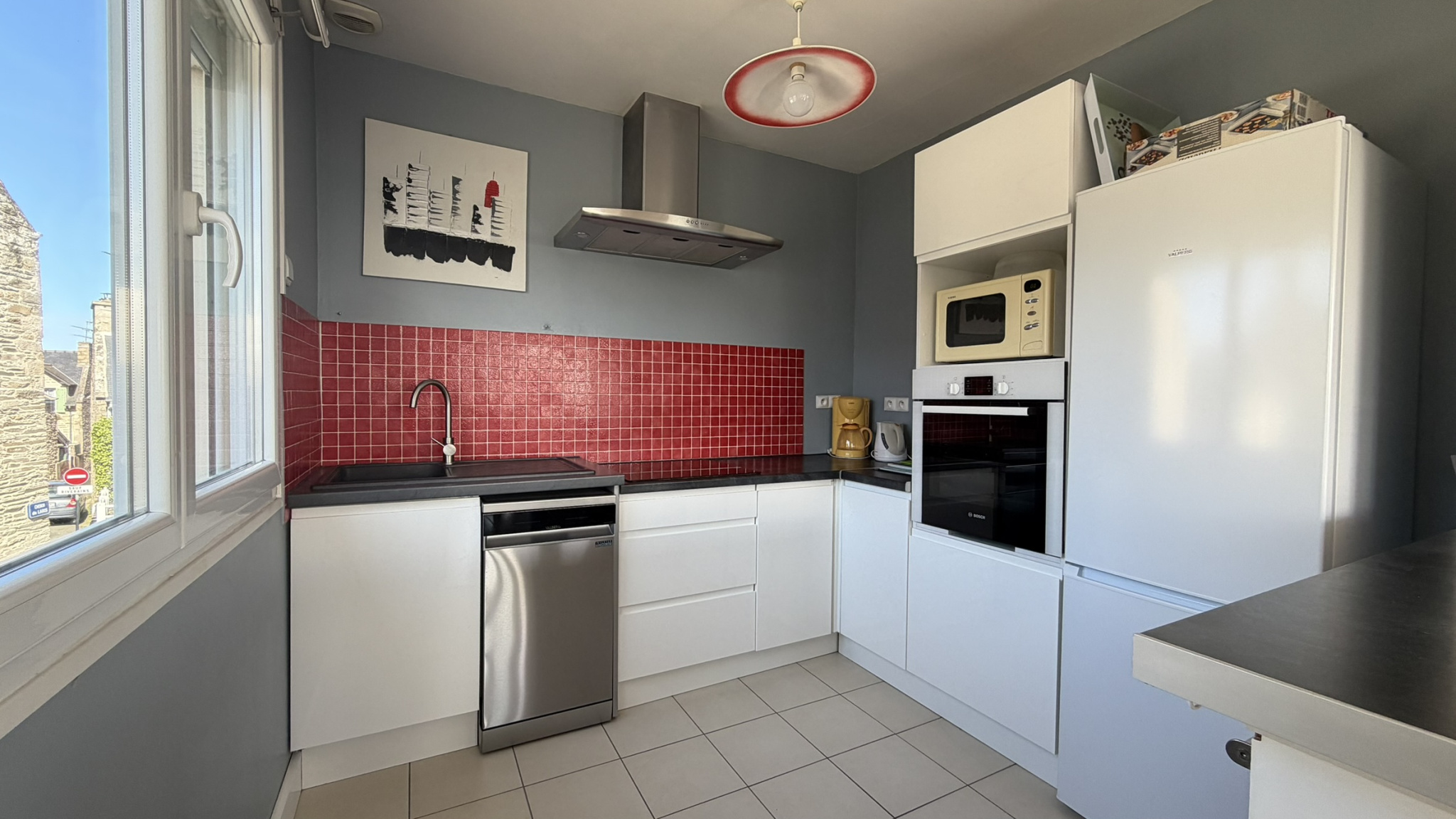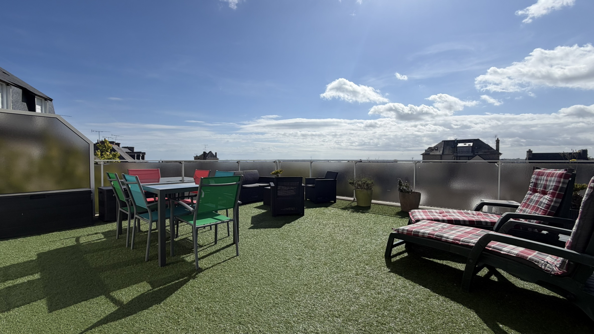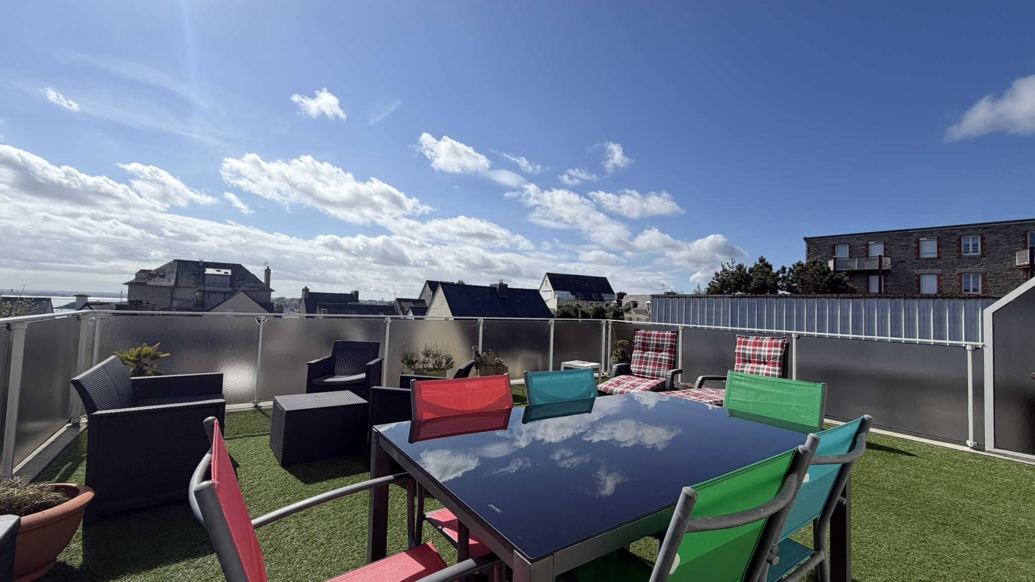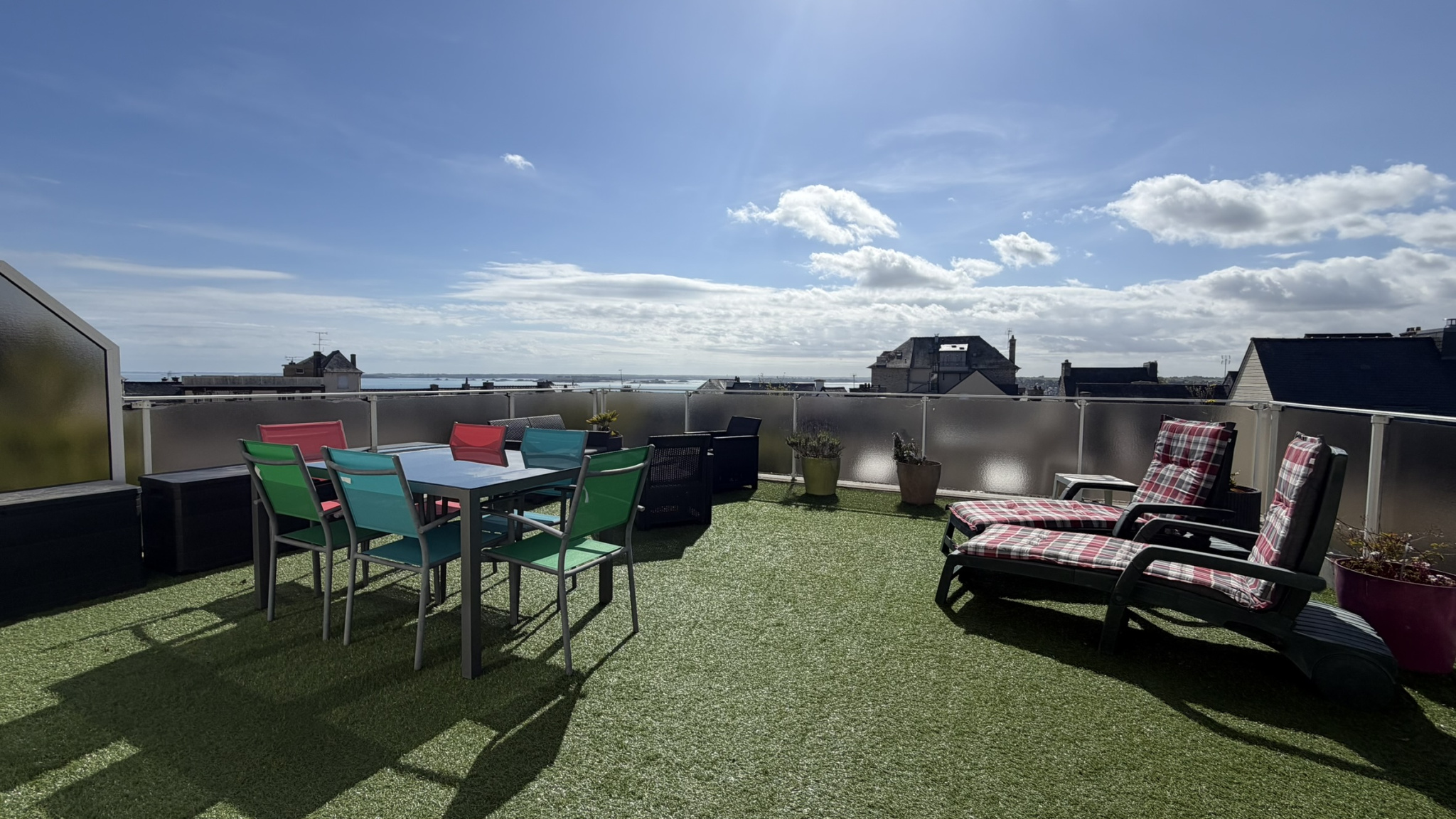À l’étage, un appartement bénéficiant d’une vue mer se compose de :