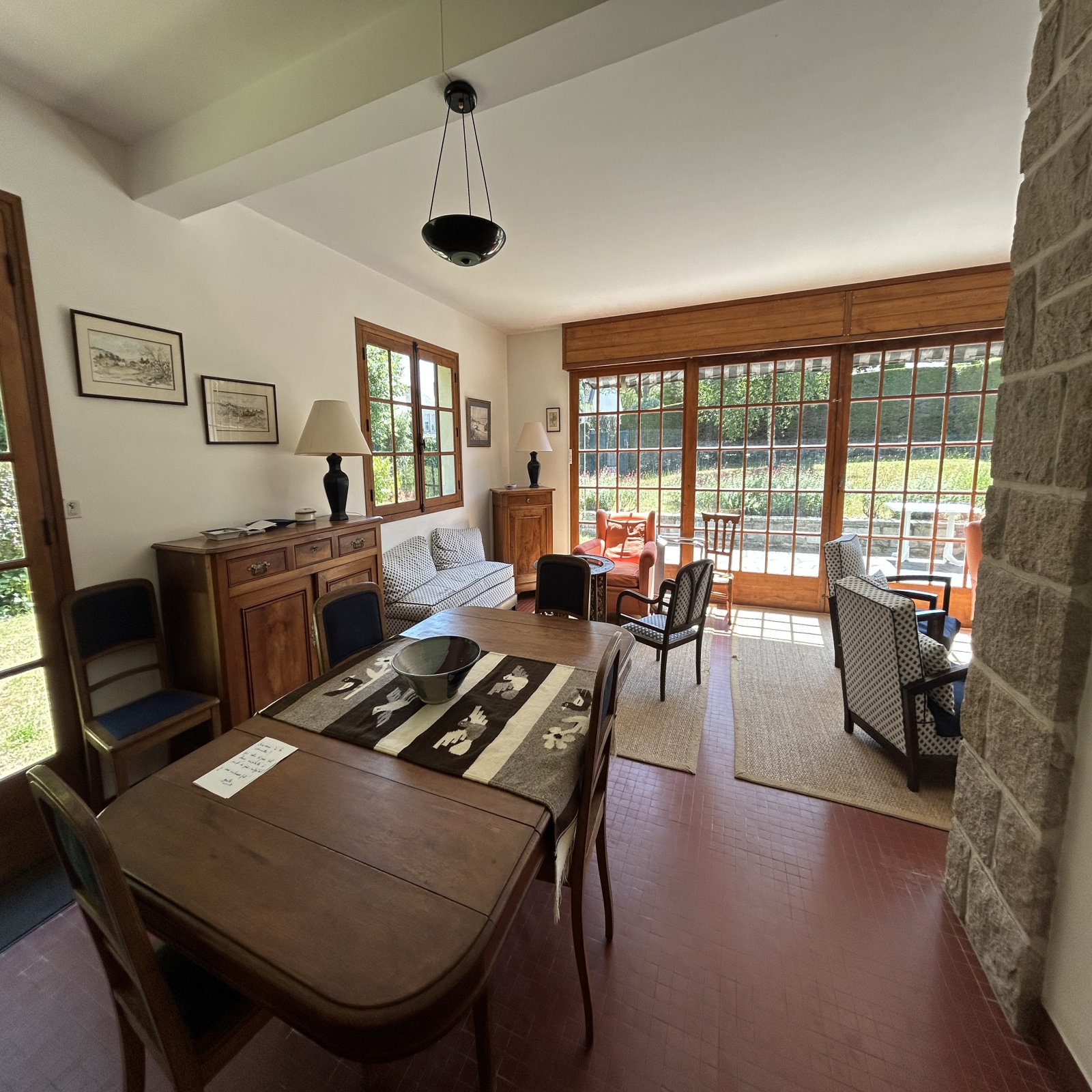 AIS SAINT CAST LE GUILDO - Située dans un environnement calme et prisé de la station balnéaire de Saint-Cast-le-Guildo, cette villa spacieuse est édifiée sur un terrain de 1 465 m² et offre de très beaux volumes pour accueillir famille et amis en toute sérénité. Dès l'entrée, vous découvrirez un vaste salon-séjour lumineux ouvrant sur une terrasse bien exposée, une cuisine indépendante, ainsi qu’un second séjour/véranda avec une seconde cuisine, idéal pour recevoir ou créer un espace indépendant. Deux chambres, une salle d’eau et un WC complètent ce niveau. À l’étage, la maison dispose de cinq chambres, d’une salle de bain, d’un espace douche et d’un WC, offrant ainsi tout le confort nécessaire pour une grande famille ou un projet de résidence secondaire avec capacité d’accueil. Le jardin arboré, la proximité de la mer et des commerces à pied font de cette maison un bien rare sur le marché.
