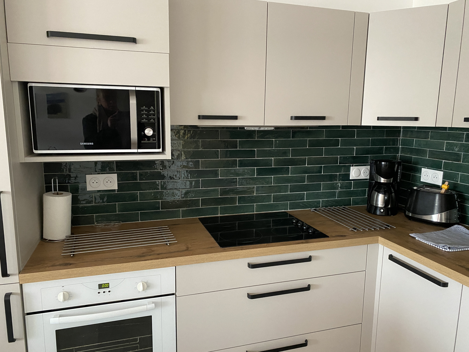 EXCLUSIF, SAINT CAST LE GUILDO,AIS ST CAST vous propose en plein coeur de la station au pied des commerces et à 100 m de la grande plage, dans la résidence Les Mielles avec ascenseur, bel appartement de type 2 au premier étage entièrement refait offrant une entrée, salon avec cuisine aménagée et équipée neuve, Terrasse transformée en lodgia de 14 m² environ fermée, une chambre avec placard, salle d'eau récente, wc indépendant.