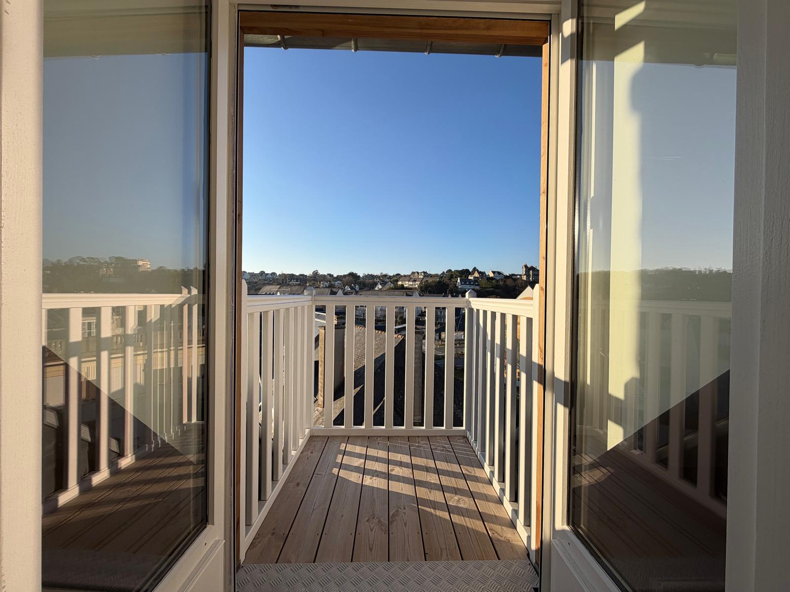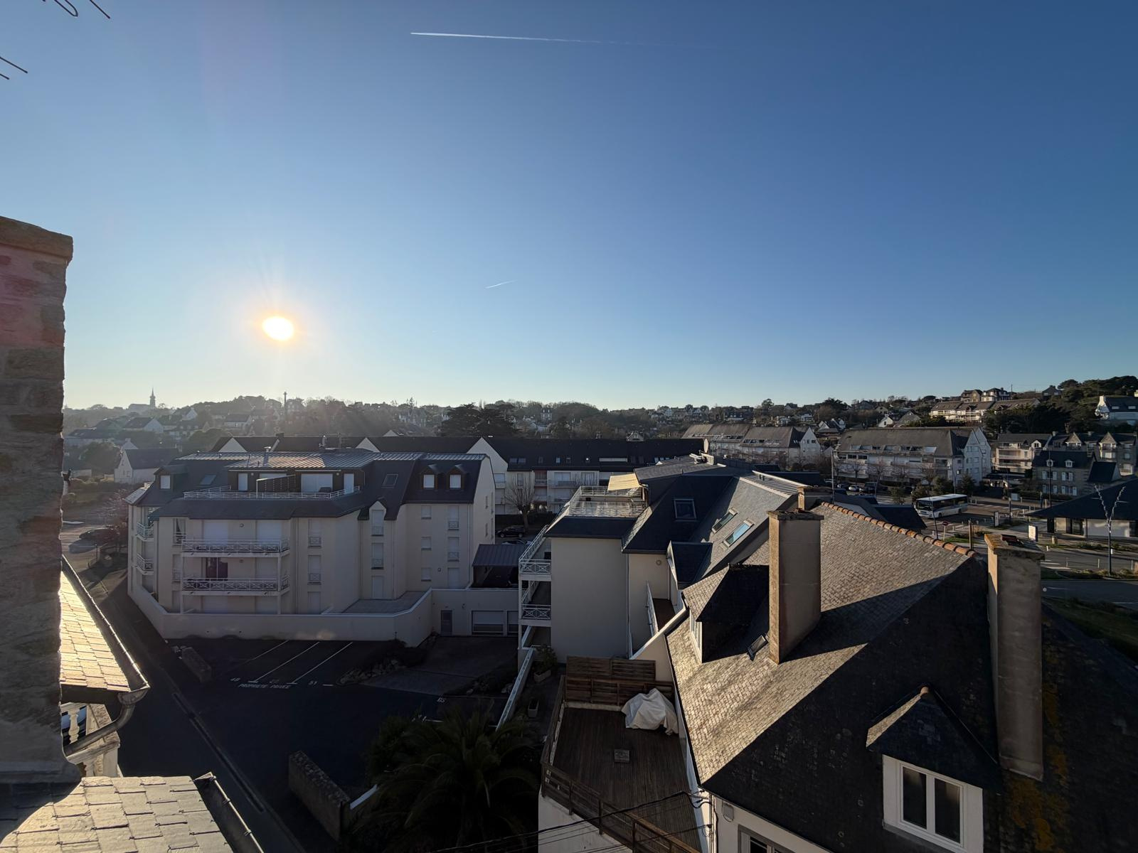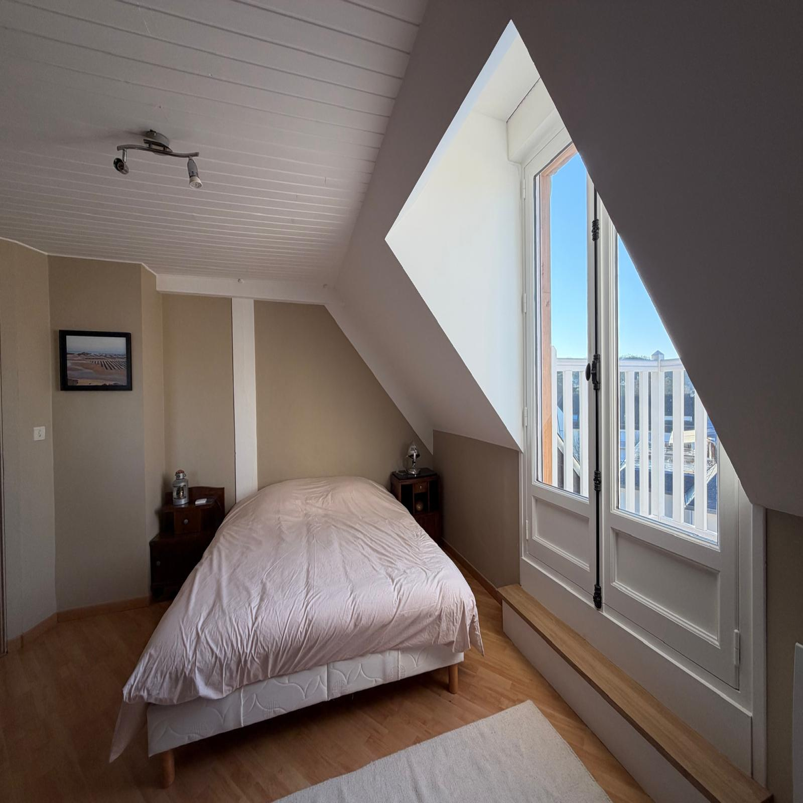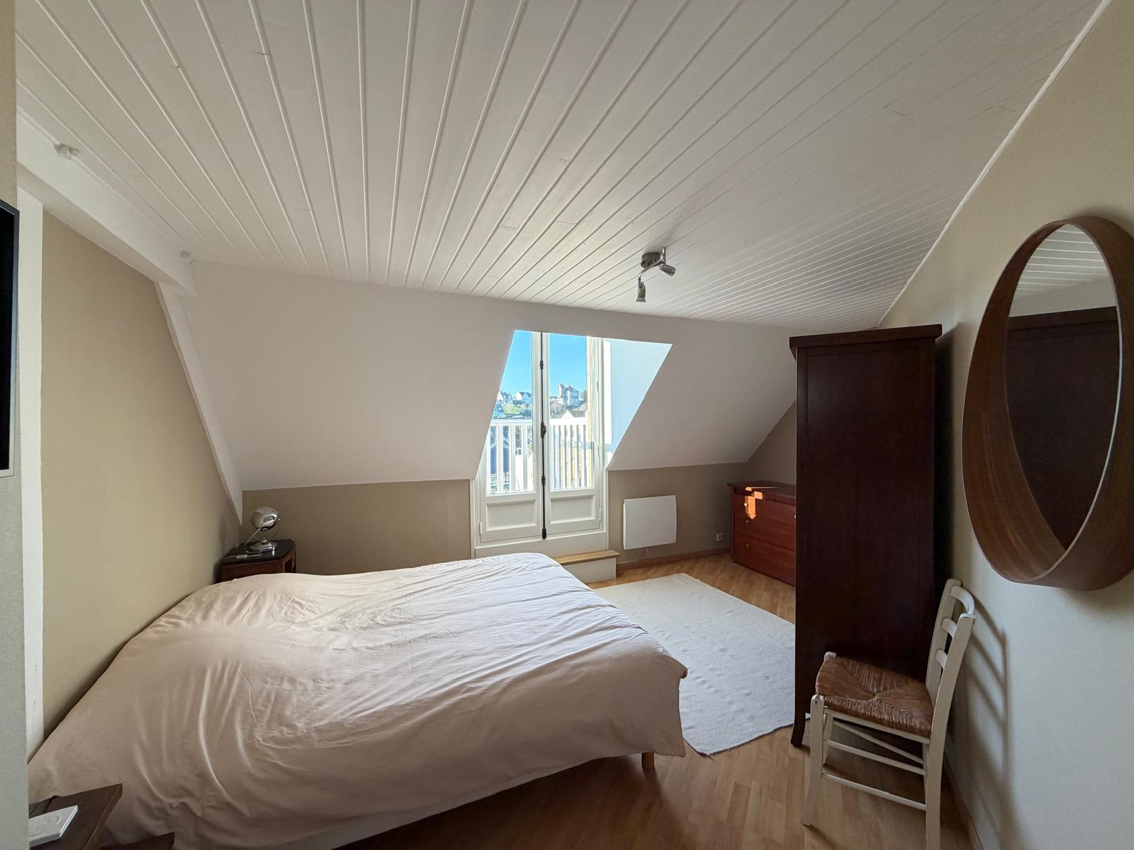 AIS SAINT CAST LE GUILDO - Situé au cœur de la station balnéaire, dans le quartier des Mielles, à 50m de la Grande Plage, l’appartement se trouve au quatrième et dernier étage d’un immeuble de caractère. Vous serez immédiatement séduit par son charme, ses volumes baignés de lumière, aux boiseries apparentes sous un plafond en cathédrale. La pièce de vie dispose d’une cuisine ouverte aménagée, offrant un vaste espace convivial et fonctionnel. La partie nuit se compose d’une chambre spacieuse, avec un beau balcon plein ouest. Une salle de bain avec WC complète l’ensemble. Sur le palier, un placard privatif vient parfaire ce bien. Un appartement coup de cœur à ne pas manquer: calme, lumineux et idéalement situé à deux pas des plages et des commodités, vous ferez tout à pied !