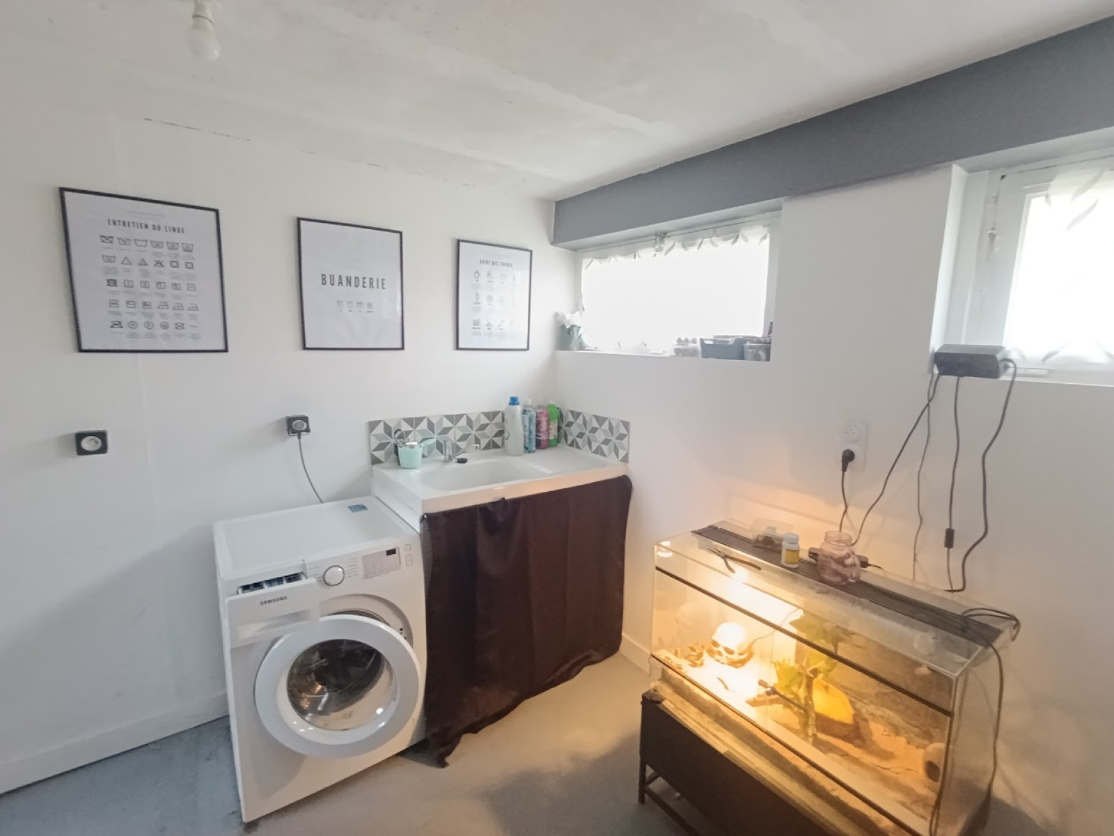 Elle dispose en rez-de-jardin, d'une belle entrée, espace buanderie, chambre d'appoint ou bureau, WC suffisament grands pour créer une salle d'eau afin d'avoir un espace complètement indépendant avec sa propore entrée. Au même niveau se trouve un grand garage.