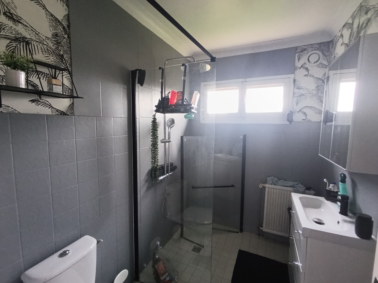 Au rez-de-chaussée surélevé, vous disposez d'un dégagement avec placards (pouvant être ouvert pour gagner des mètres carrés de pièce de vie), une cuisine aménagée et équipée, salle à manger et salon. Deux chambres, salle d'eau/WC. Le tout avec une triple exposition donc très lumineux.