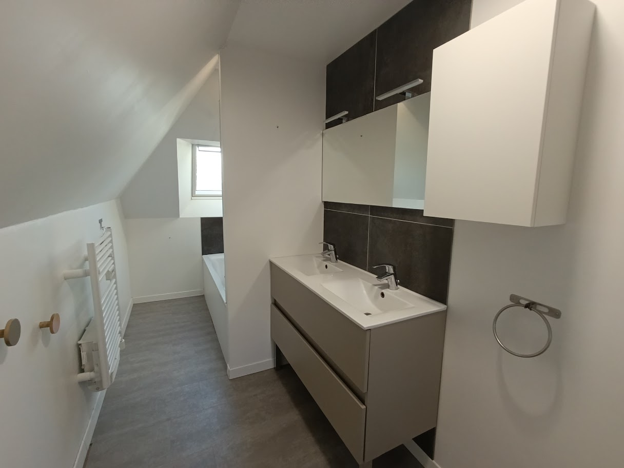 A l'étage, trois chambres, une salle d'eau + une salle de bains avec chacune leur WC.