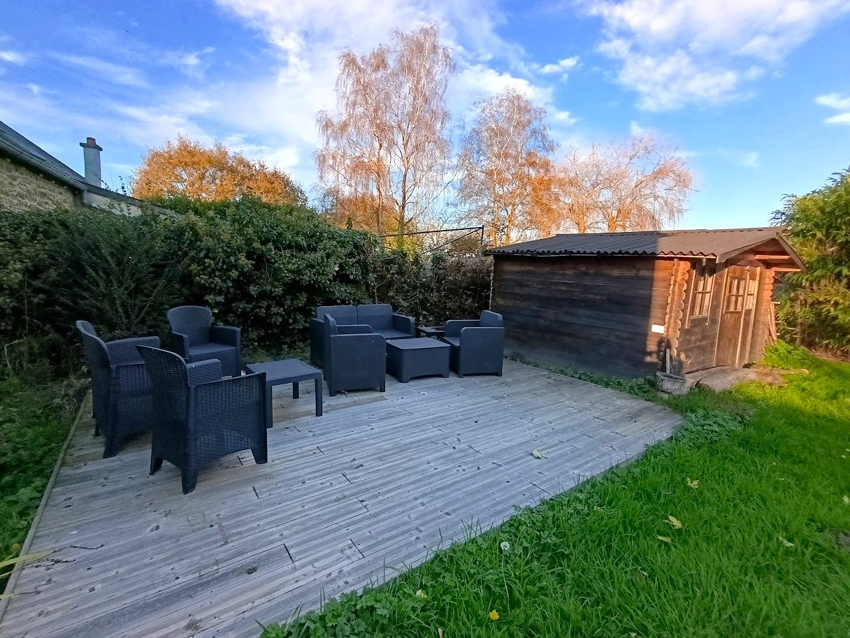 A l'extérieur, dans un cadre idyllique un coin terrasse et un jardin boisé magnifique avec un BONUS une dépendance offrant une chambre avec sa salle d'eau/WC.