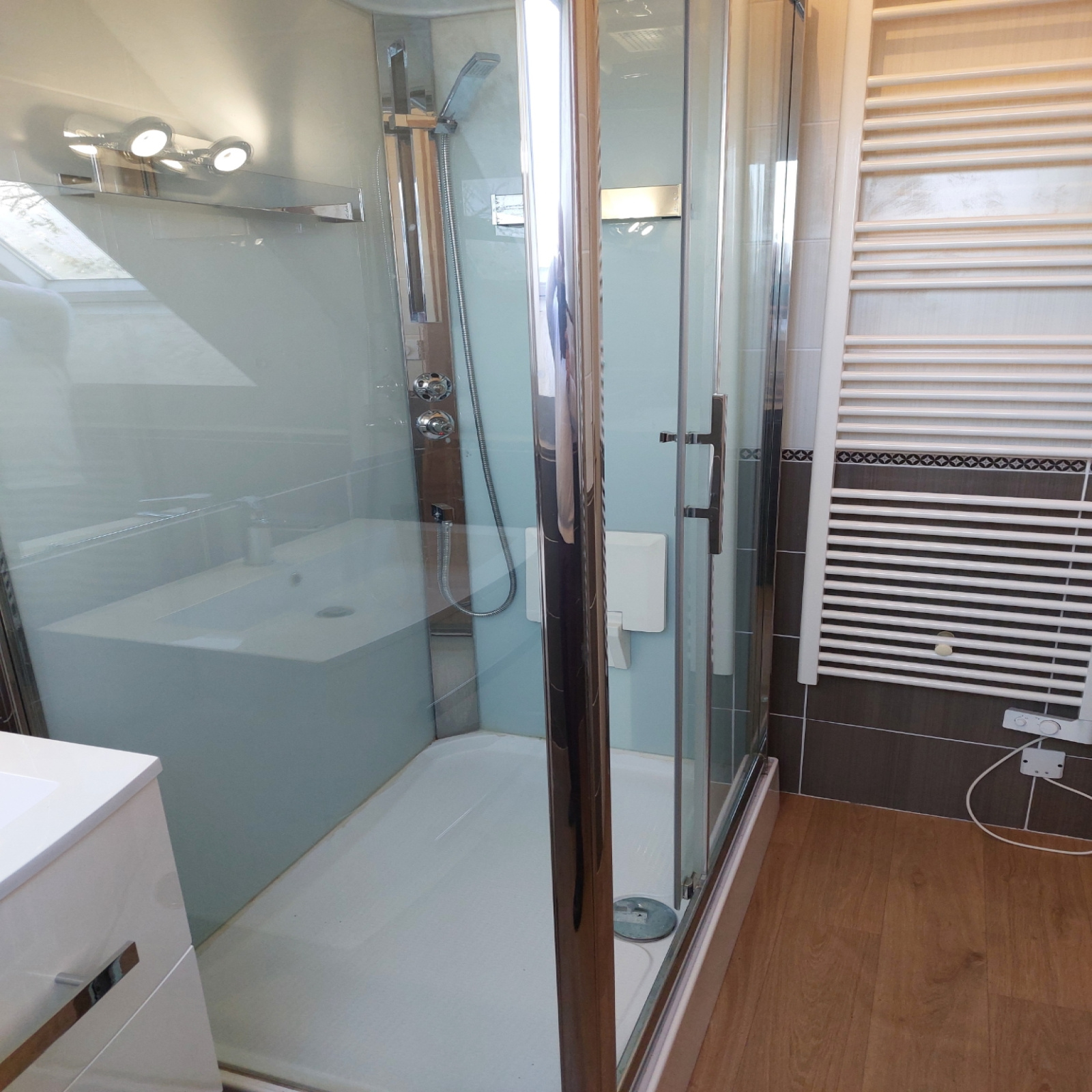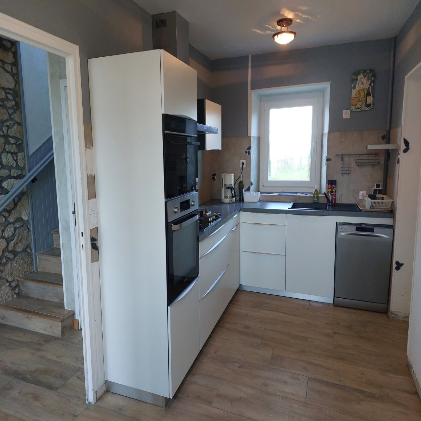 Séjour spacieux avec cheminée, idéal pour des soirées conviviales, cuisine indépendante, aménagée et équipée, entrée accueillante, 4 chambres, dont une au rez-de-chaussée avec salle d’eau et WC, une salle d'eau et wc supplémentaires à l'étage. Grand garage de 30 m² avec porte électrifiée