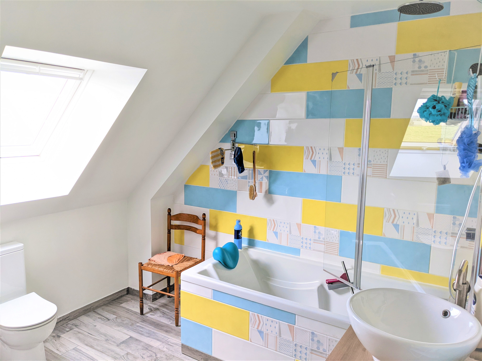 A l'étage, un palier dessert 3 chambres et une salle de bains avec WC.