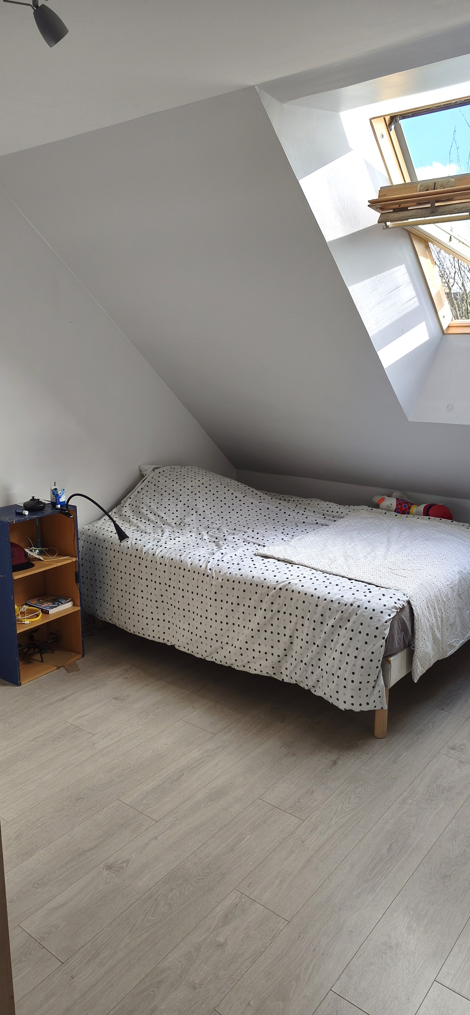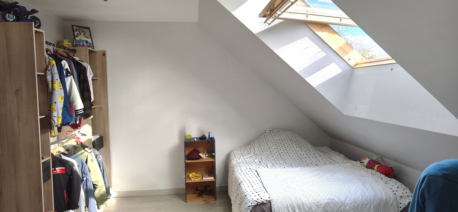 À l’étage, deux chambres, une salle d’eau et un WC complètent l’ensemble.