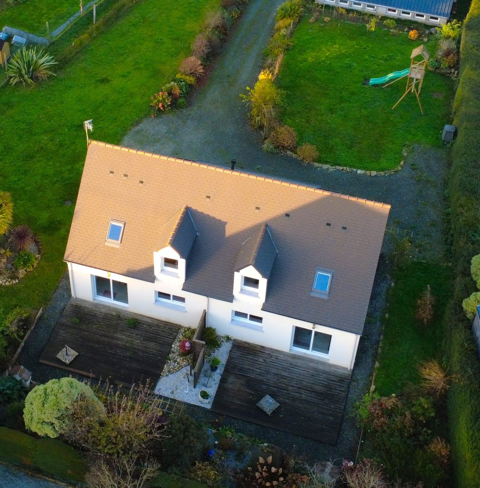 Elles disposent chacune en rez-de-chaussée, d'une entrée, espace WC/Lave-linge/sèche-linge (l'une des maison dispose d'une douche à cet endroit pour accueillir en PMR), séjour/Salle à manger avec accès terrasse SUD, belle cuisine aménagée et équipée.