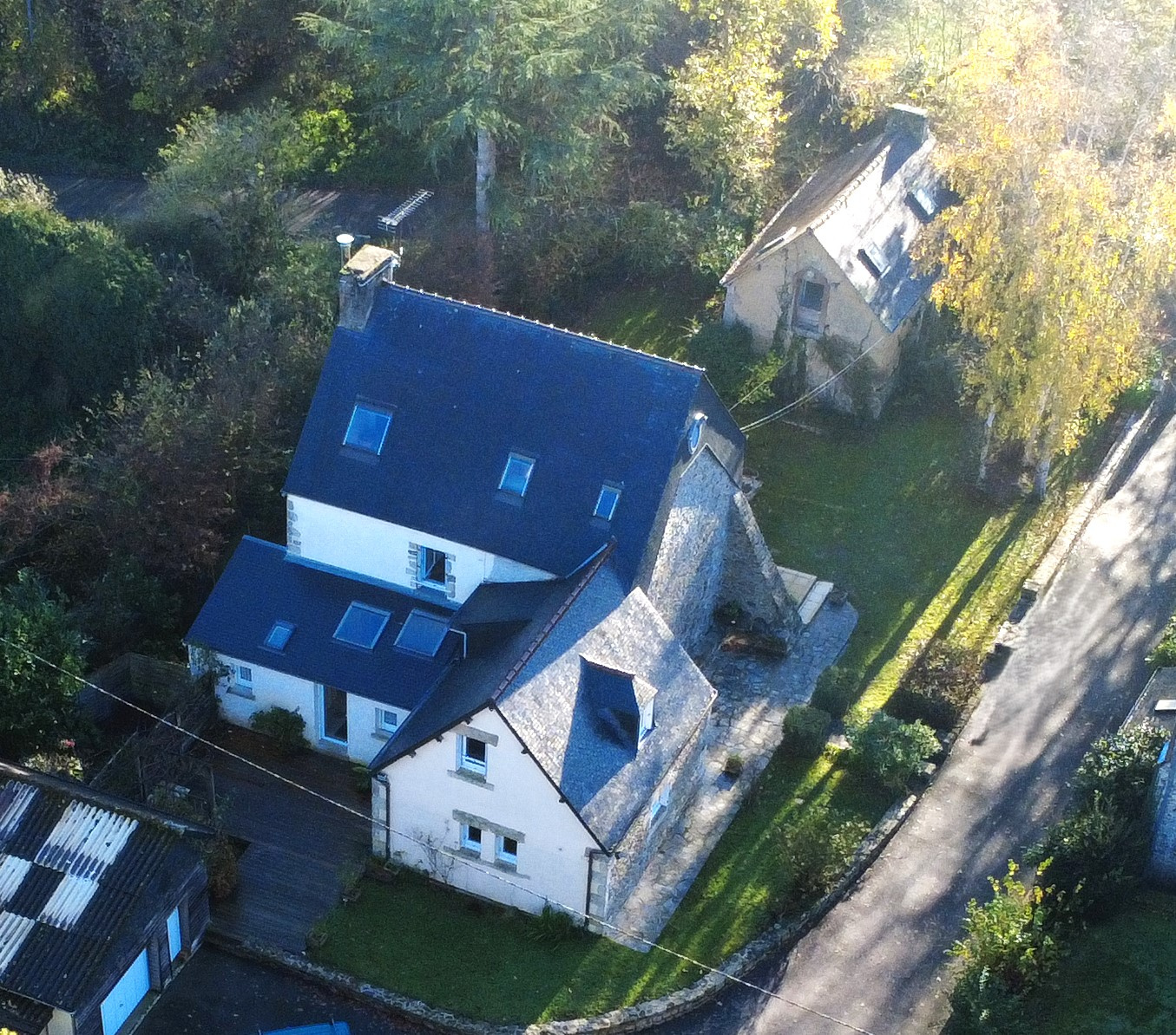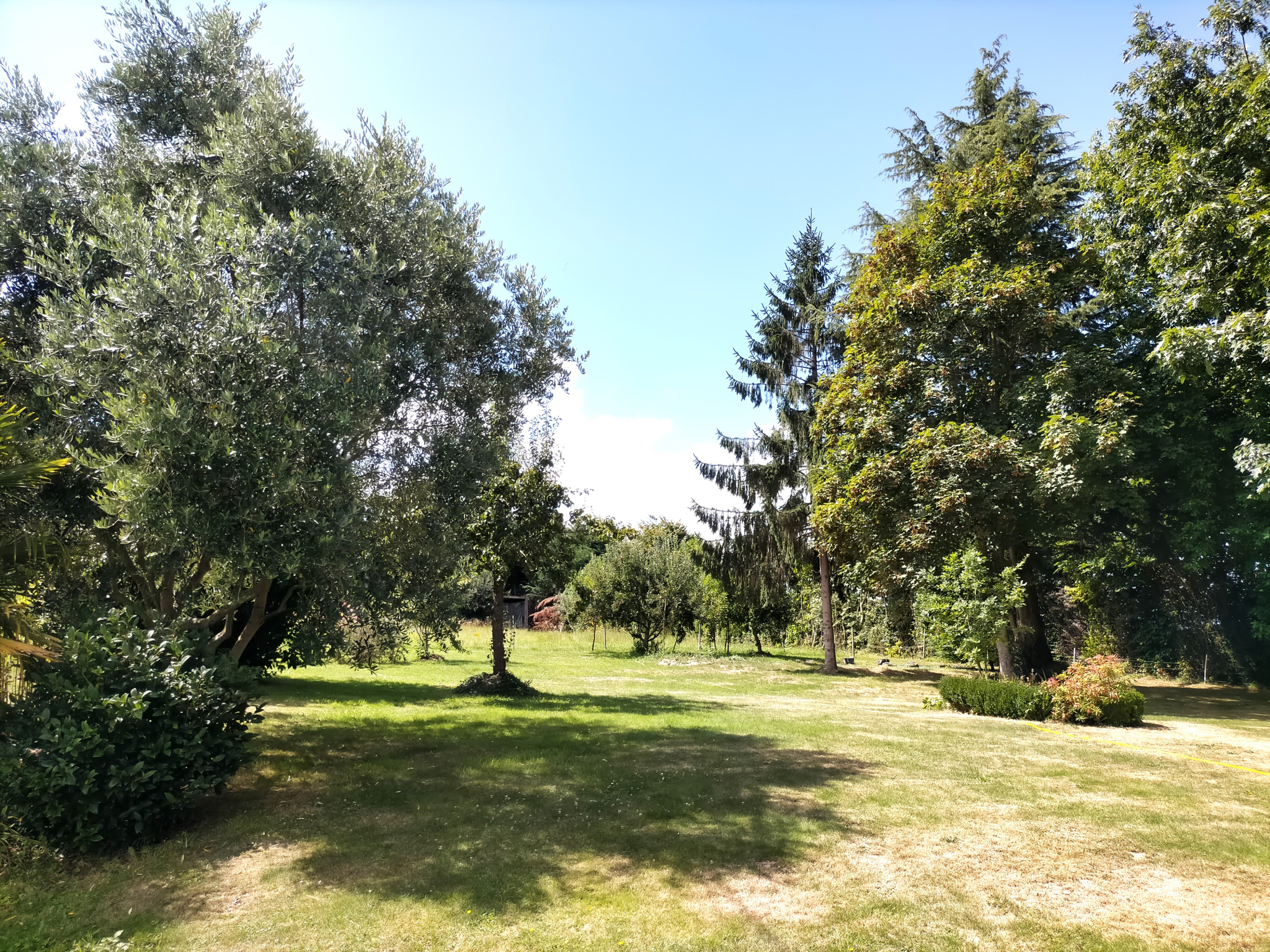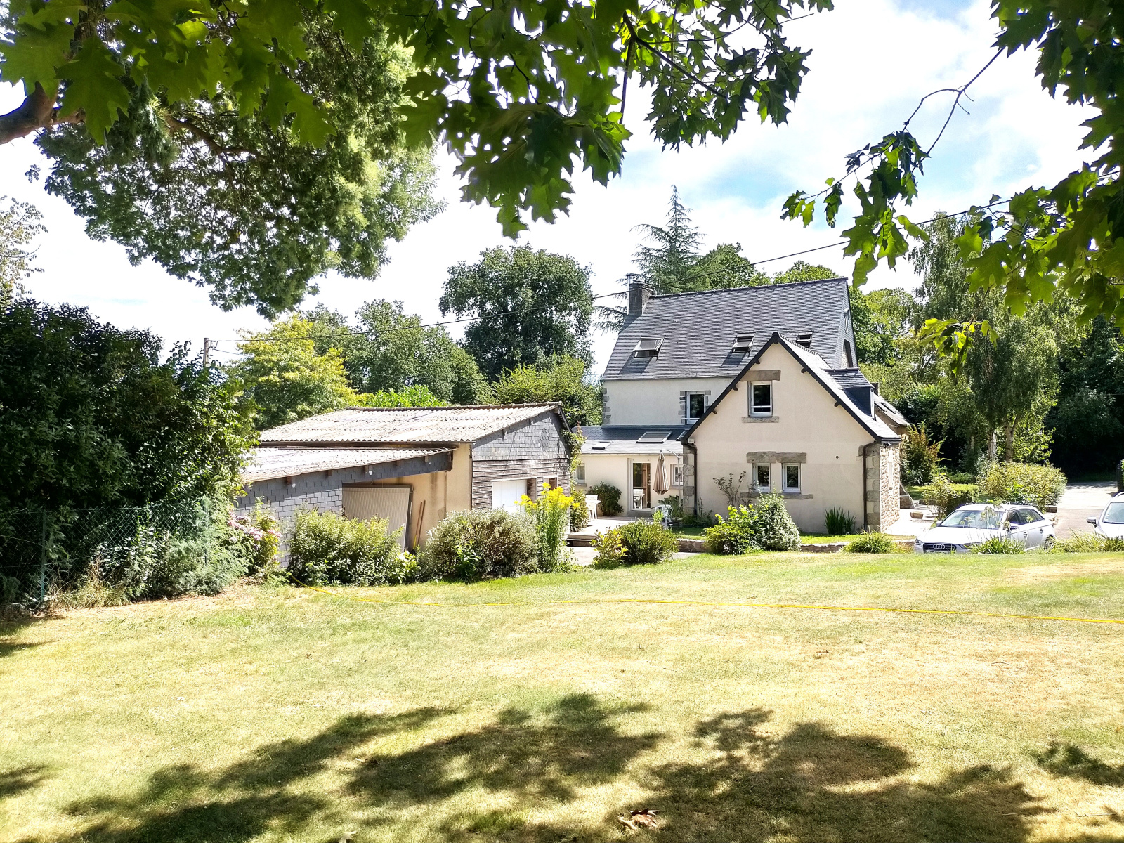 L’extérieur, une parenthèse de nature : Posée sur un terrain arboré de 2 500 m², la maison se prolonge par une grange à rénover, un grand garage et un carport. Un potentiel rare pour qui souhaite conjuguer vie de famille et projets futurs, dans un cadre bucolique.