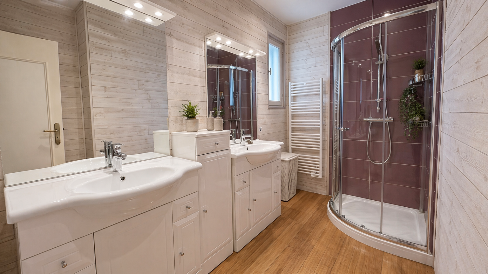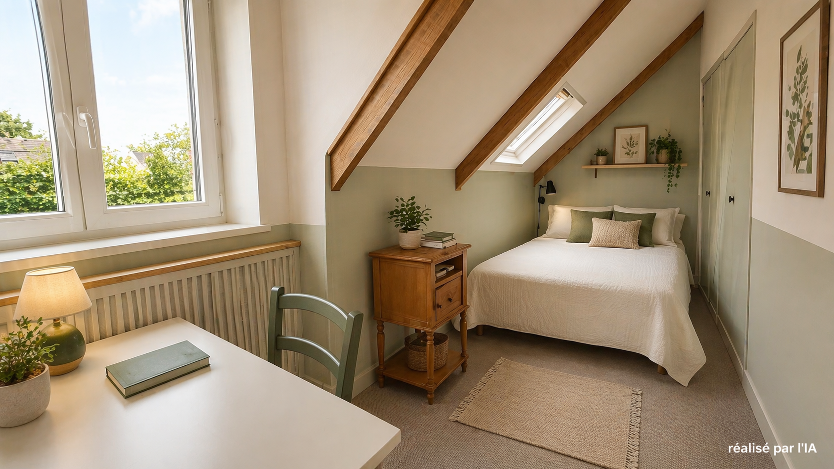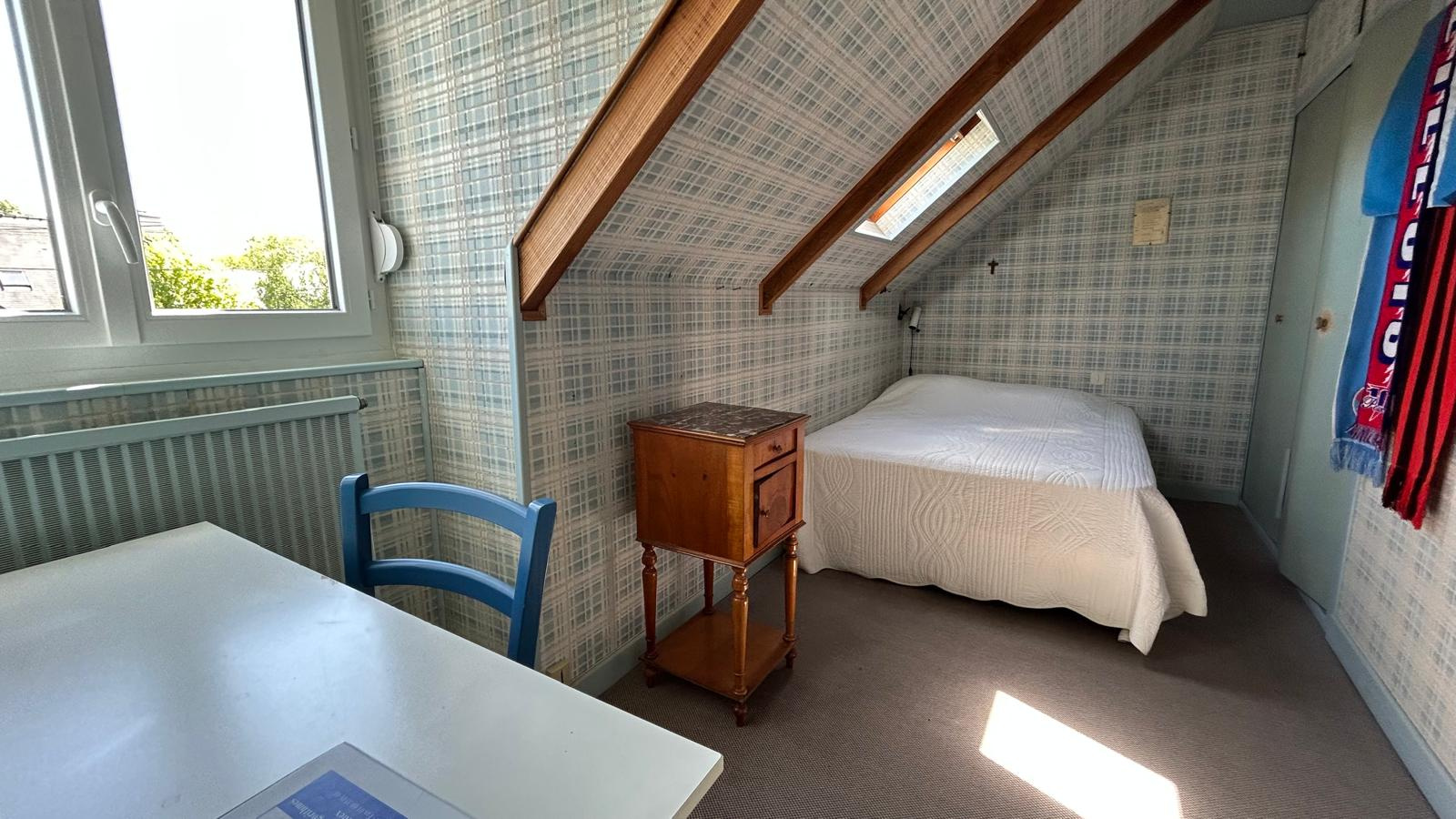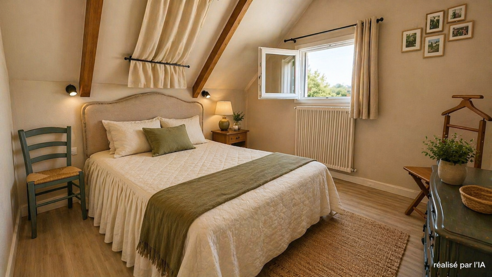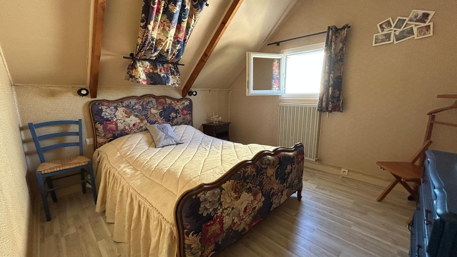 A l'étage, 3 chambres, salle d'eau/WC et une possibilité d'une 4ème chambre si nécessaire. Pour faciliter la projection nous avons utiliser des photos IA (avant/après) pour ce niveau .
