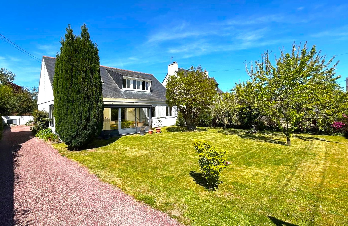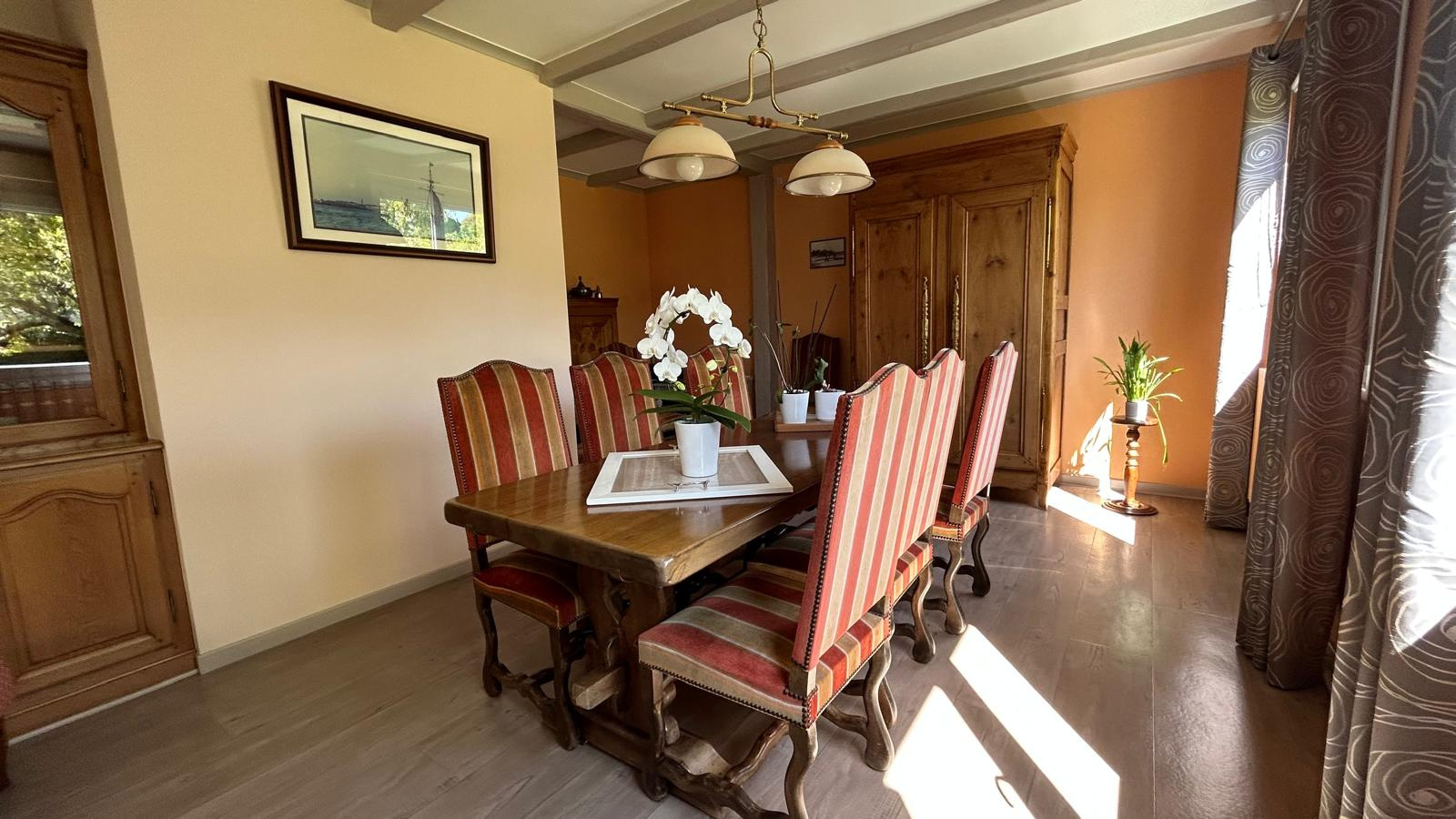 Cette maison est et a été très bien entretenue avec des points forts comme des menuiseries neuves, une pompe à chaleur et une isolation d'origine de bonne qualité. Ceci expliquant un excellent DPE en B.