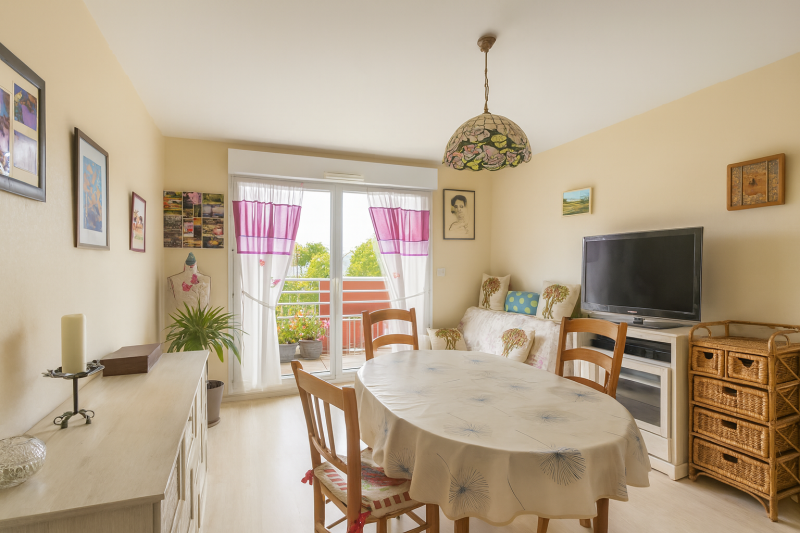 Situé à 10 minutes à pied de la Plage du Prieuré, dans une résidence de standing avec ascenseur, appartement de type 2 offrant, une entrée avec placard, pièce de vie avec accès balcon et vue dégagée, cuisine ouverte, WC indépendants, salle d'eau et chambre (coin couchage). Garage fermé en sous-sol.